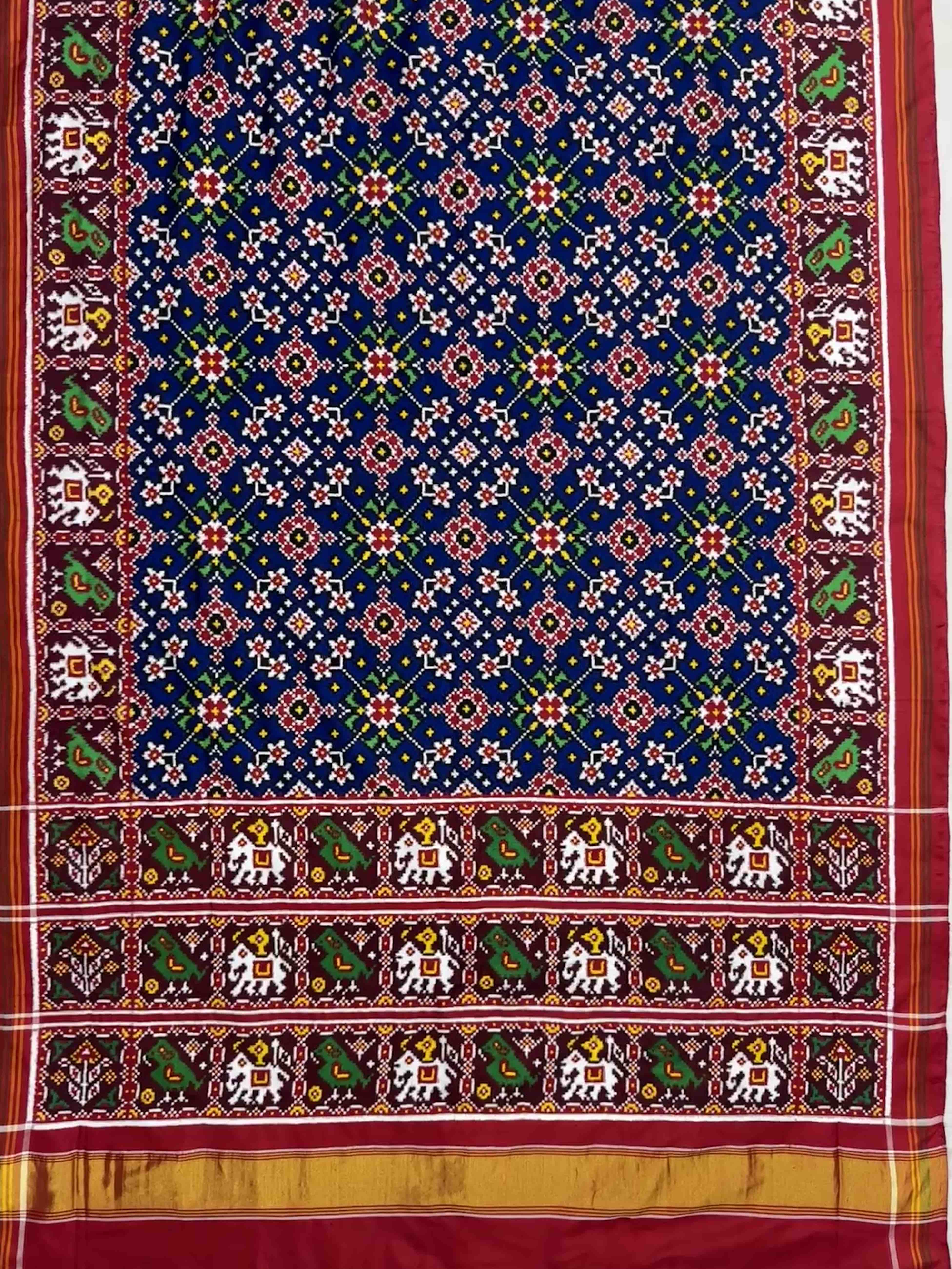 Maroon & Blue Navratan Patan Patola