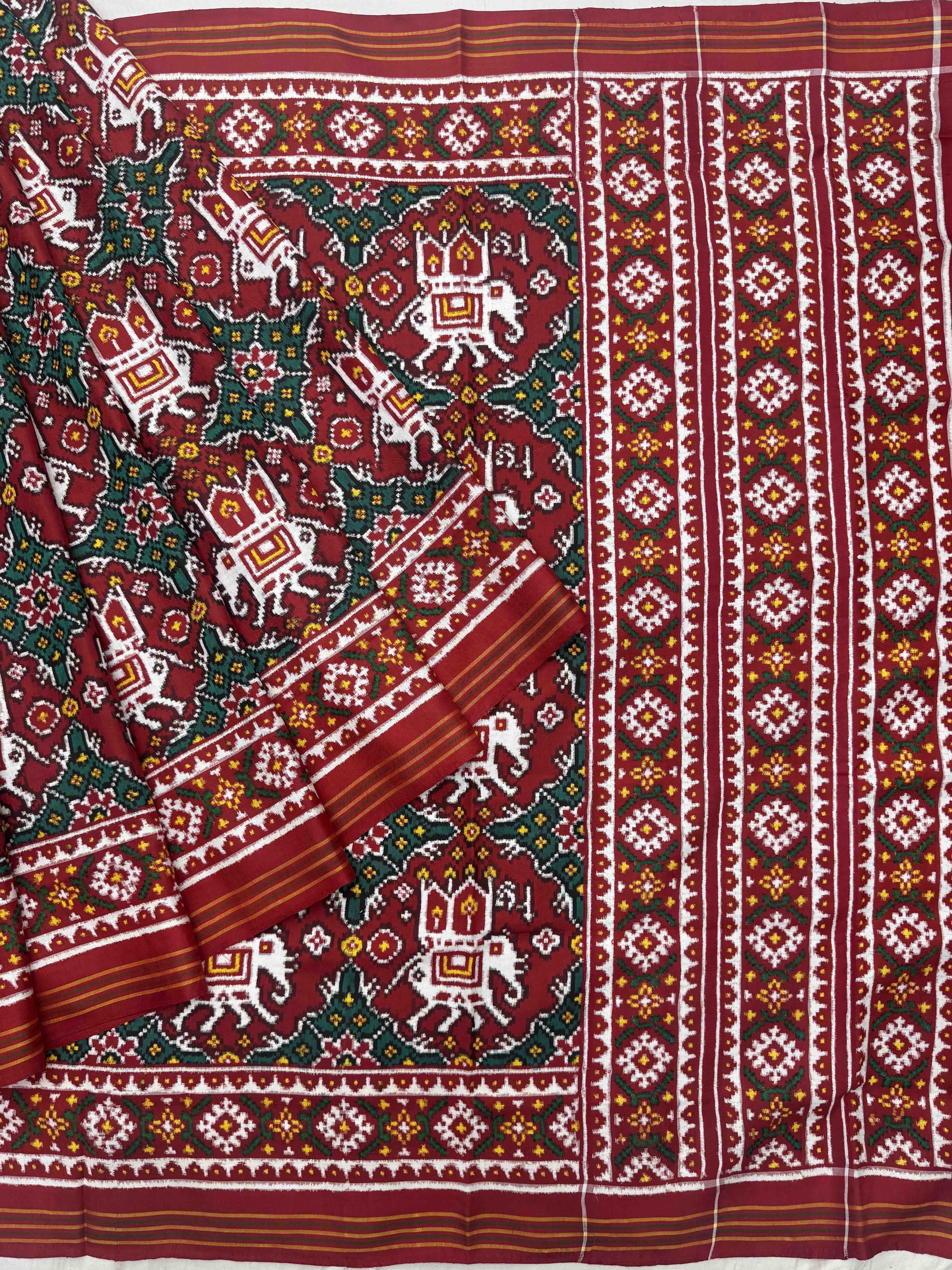 Double Ikat Hand-woven Patola saree Pure Mulberry Silk Length:5.5 meter Width:46 inch Dry Clean Only Authentic Double...