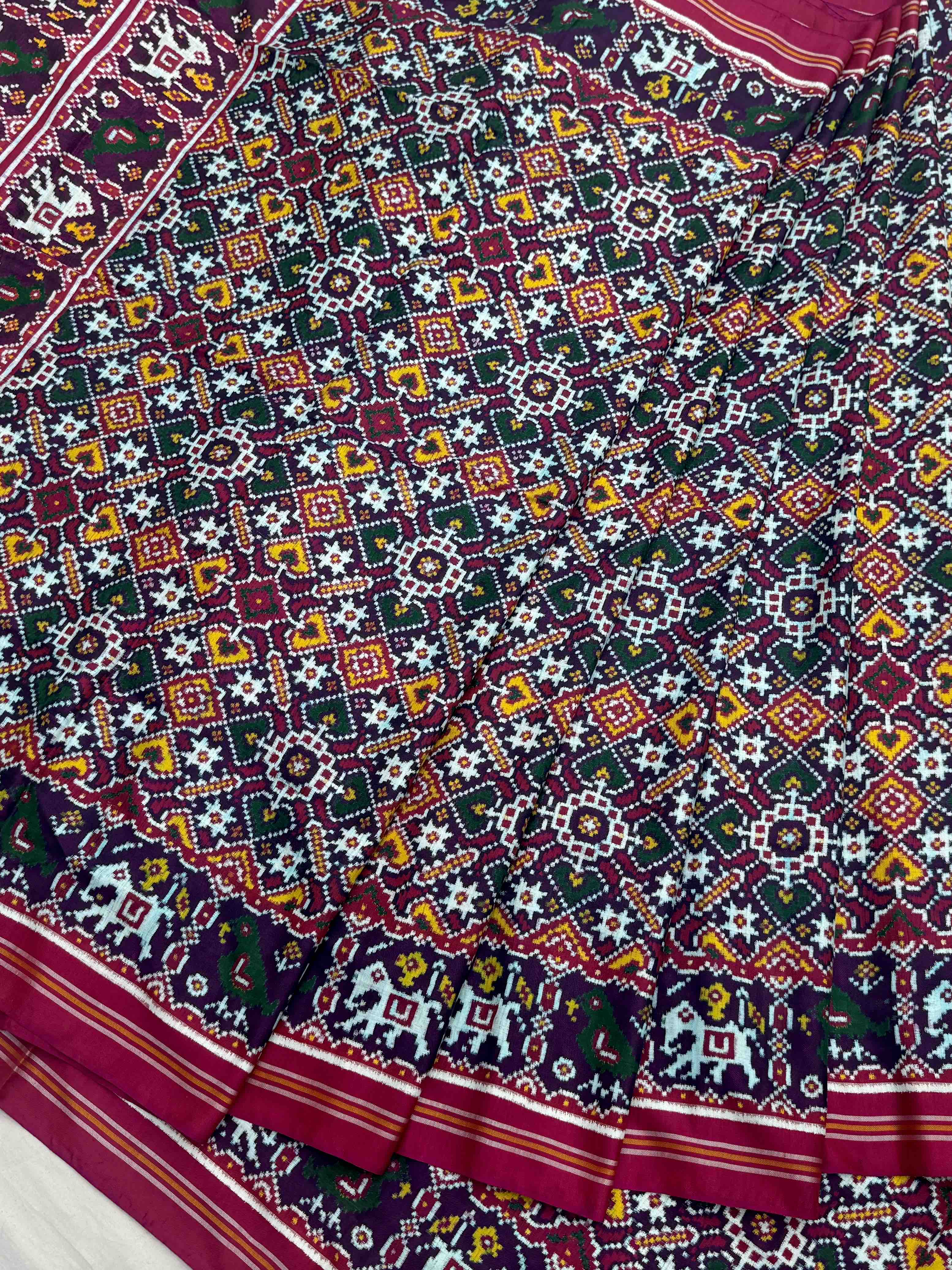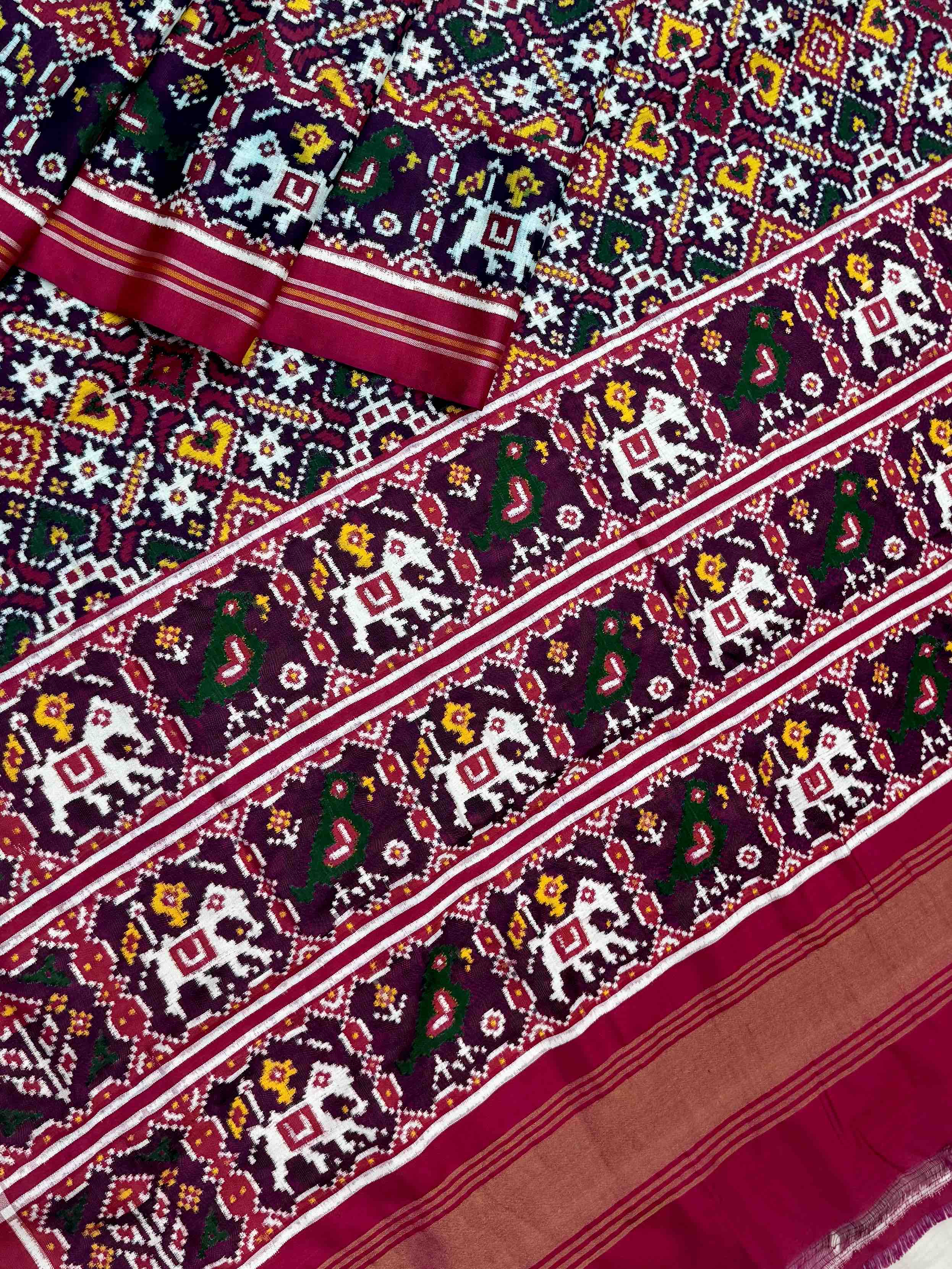 Double Ikat Hand-woven Patola saree Pure Mulberry Silk Length:5.5 meter Width:46 inch Dry Clean Only Authentic Double...