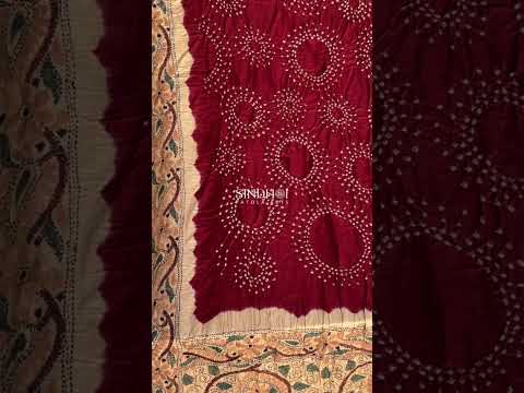 Pure Gaji Silk Bandhani saree with fusion of kantha work of west bengal