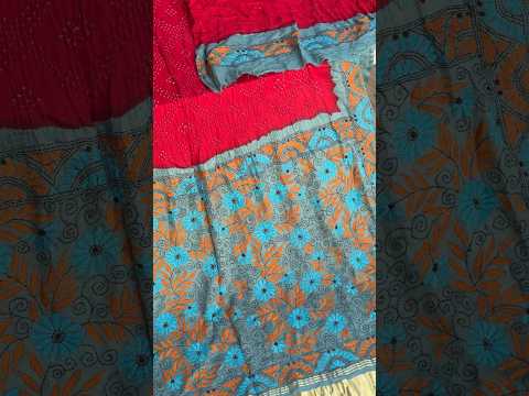 Pure Gaji Silk Bandhani saree with fusion of kantha work of west bengal