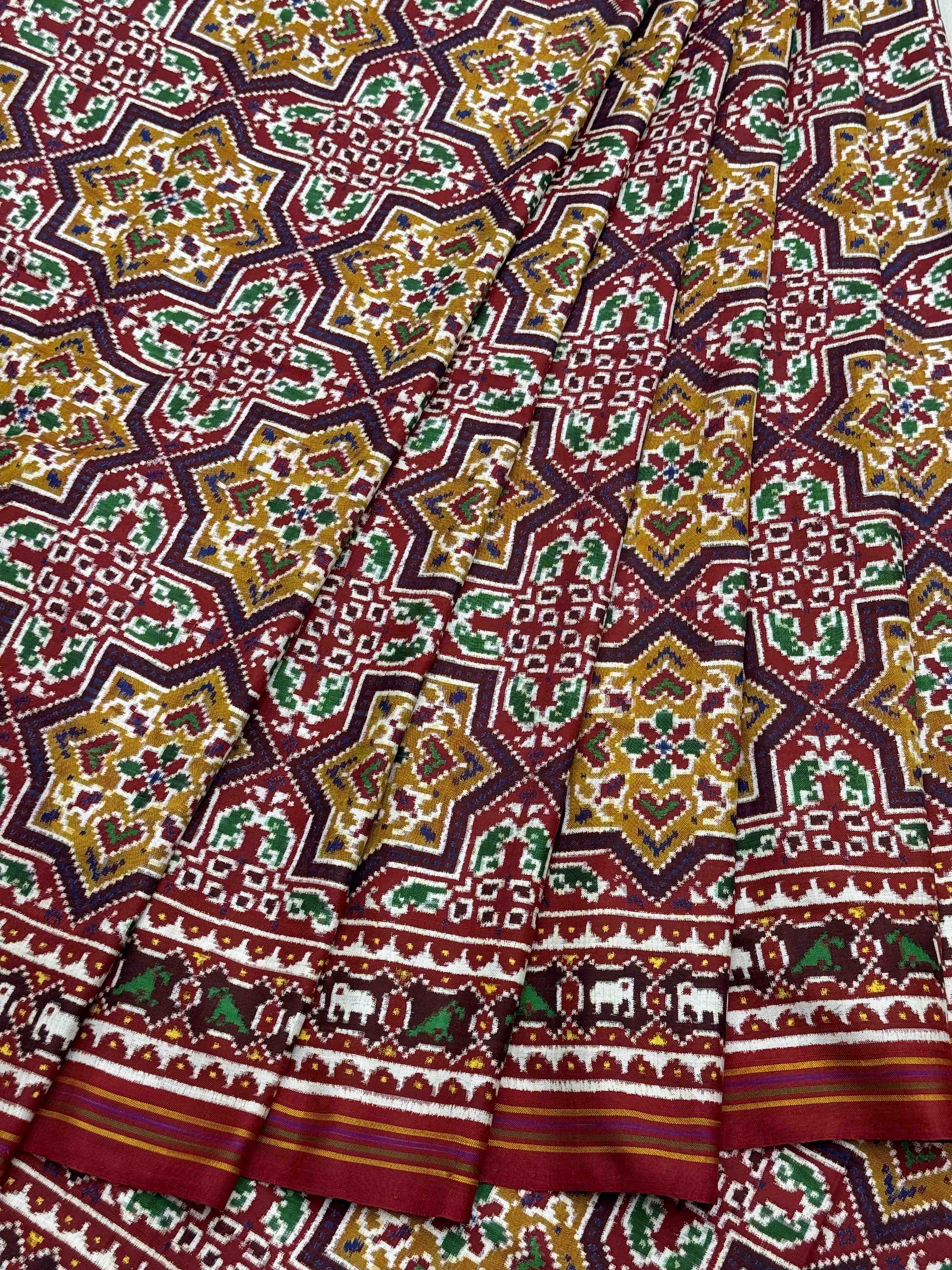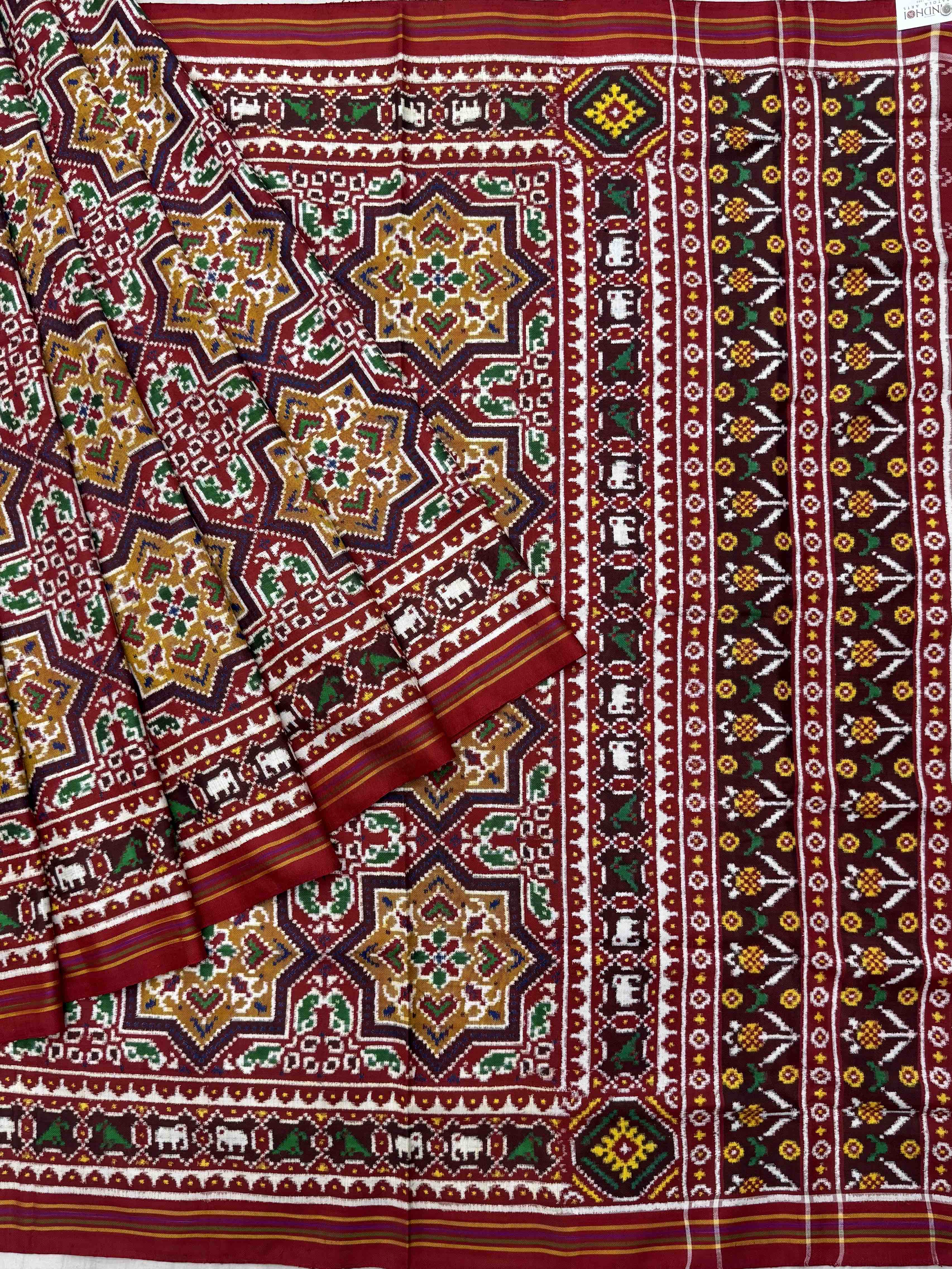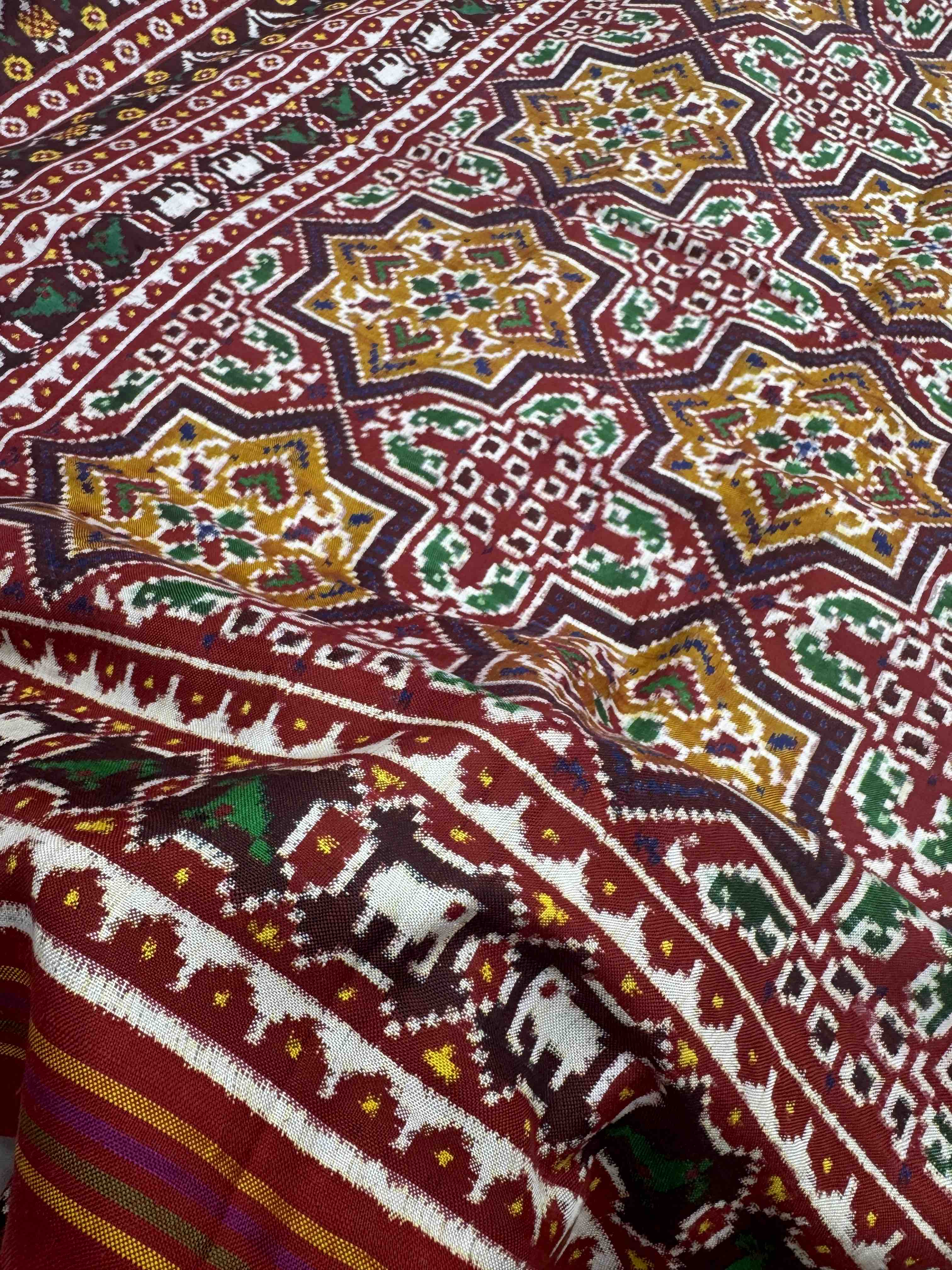 Double Ikat Hand-woven Patola saree Pure Mulberry Silk Length:5.5 meter Width:46 inch Dry Clean Only Authentic Double...
