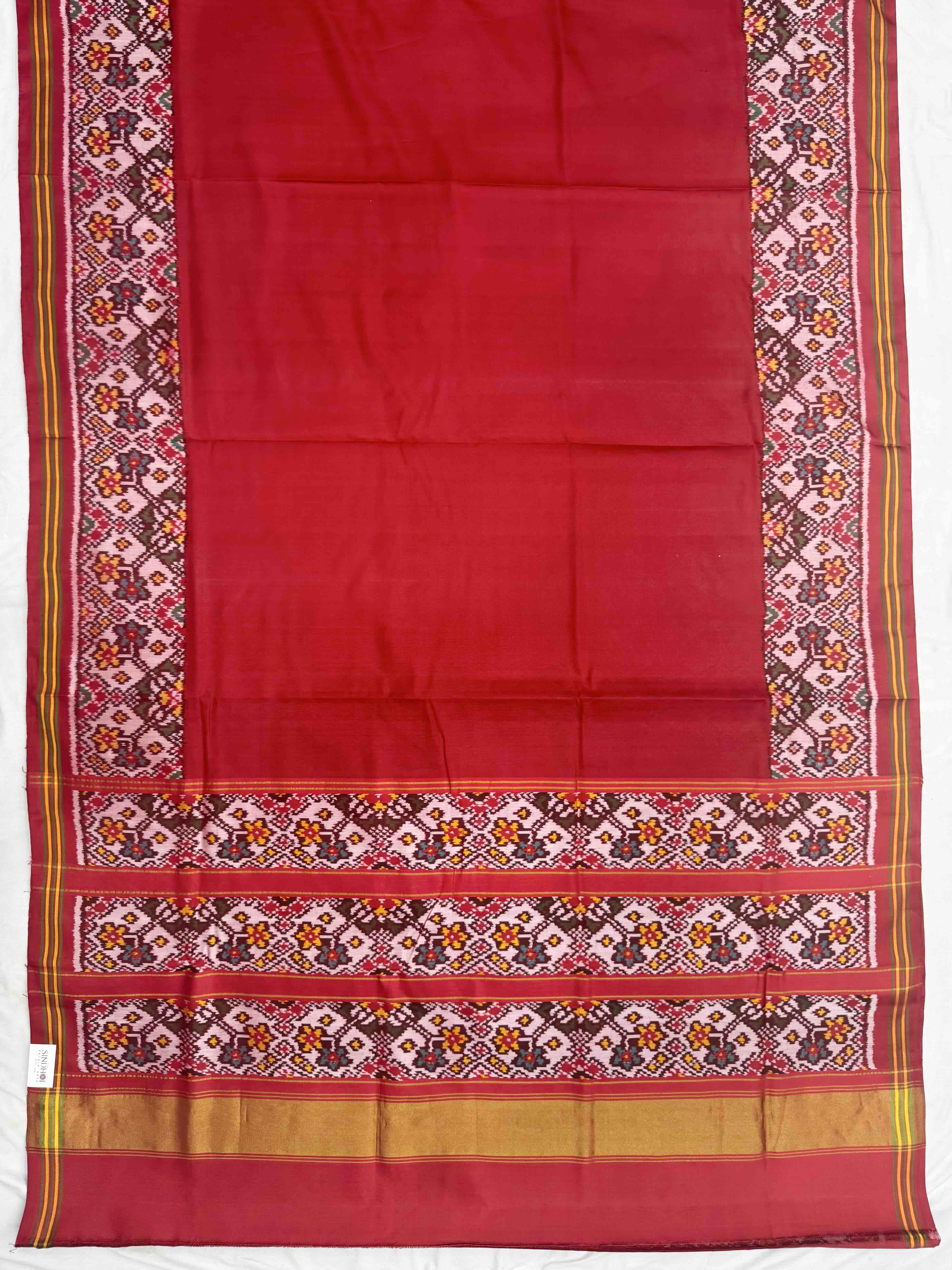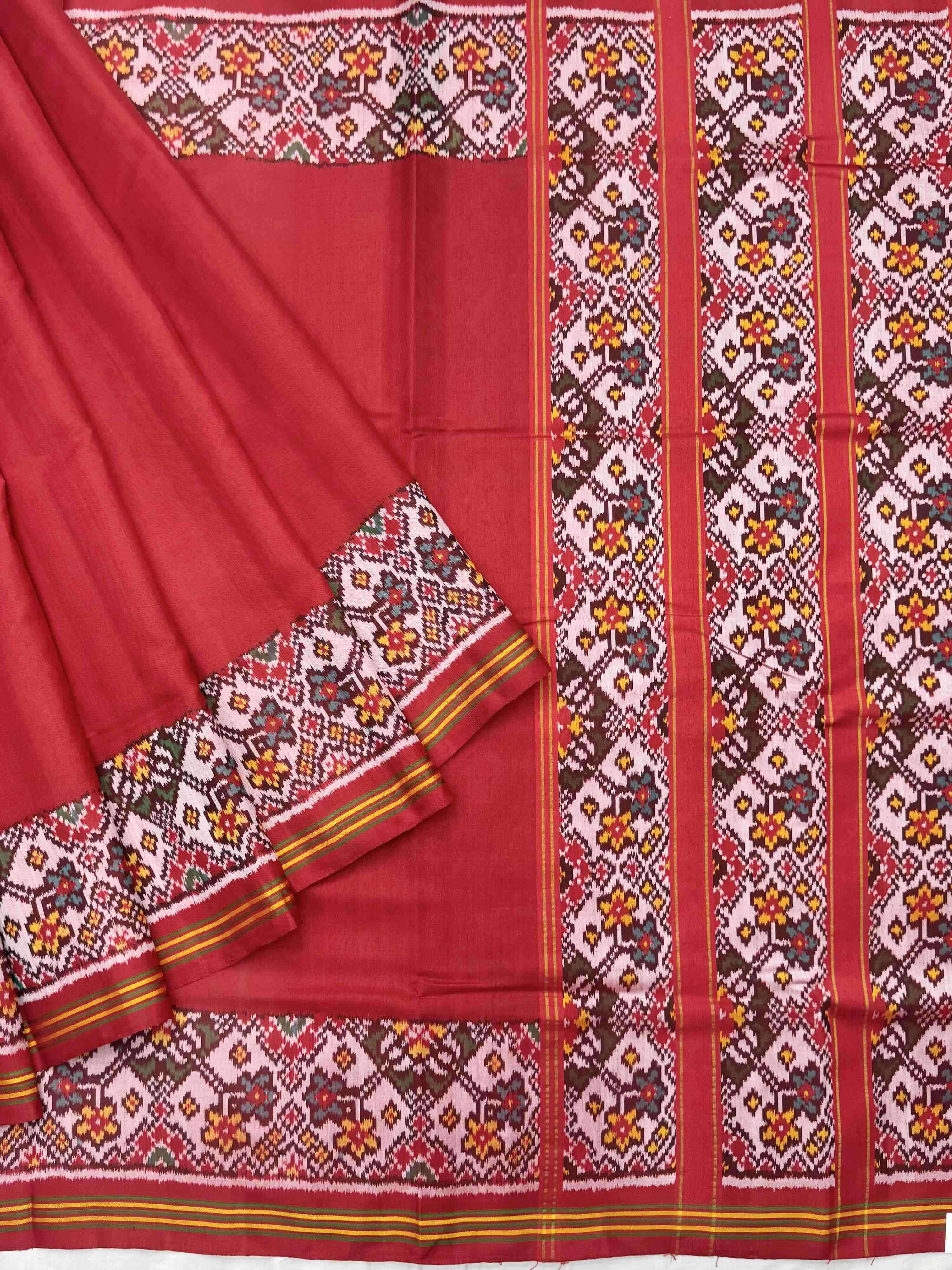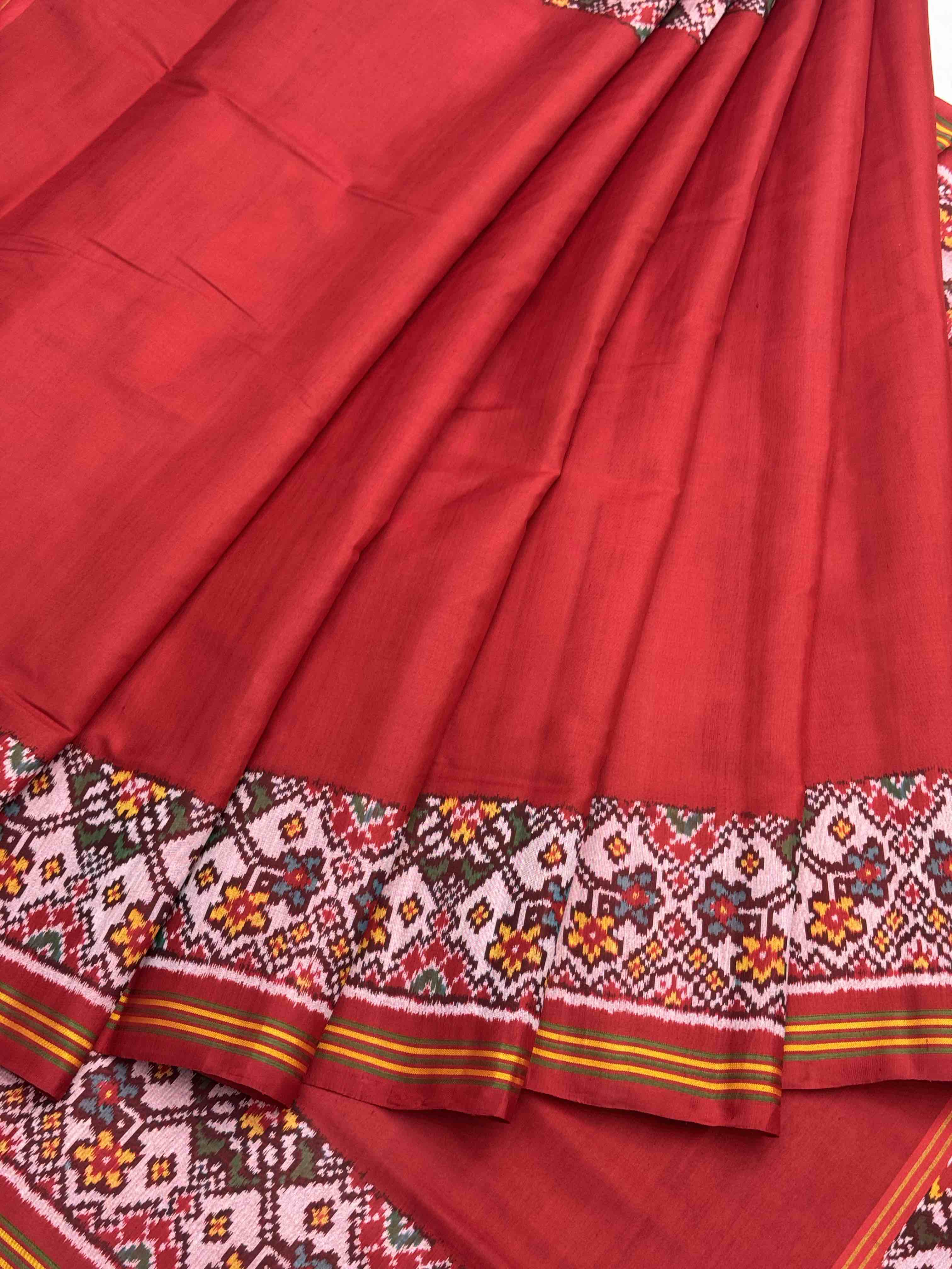 Plain Red Navratan border Patola Saree