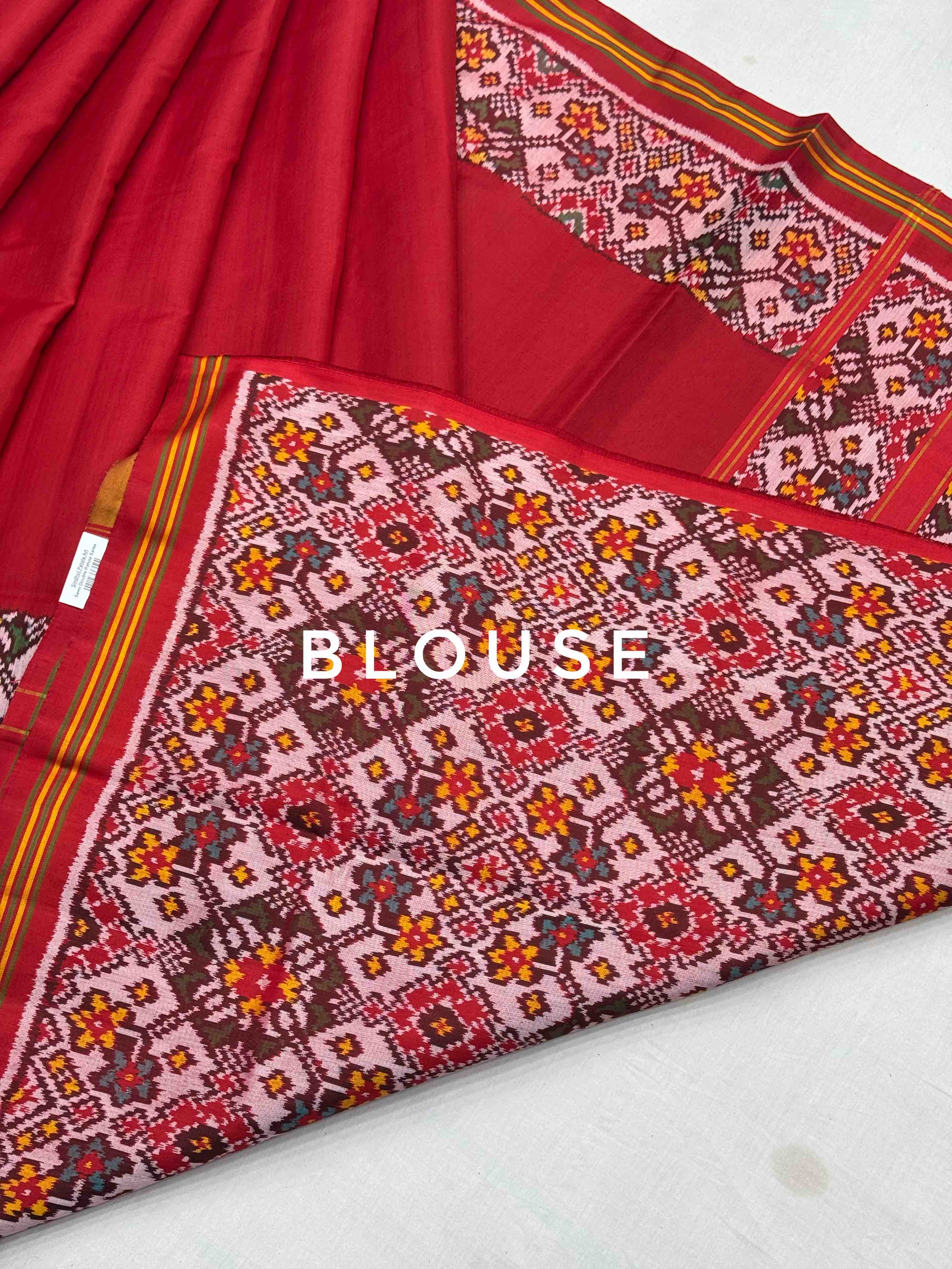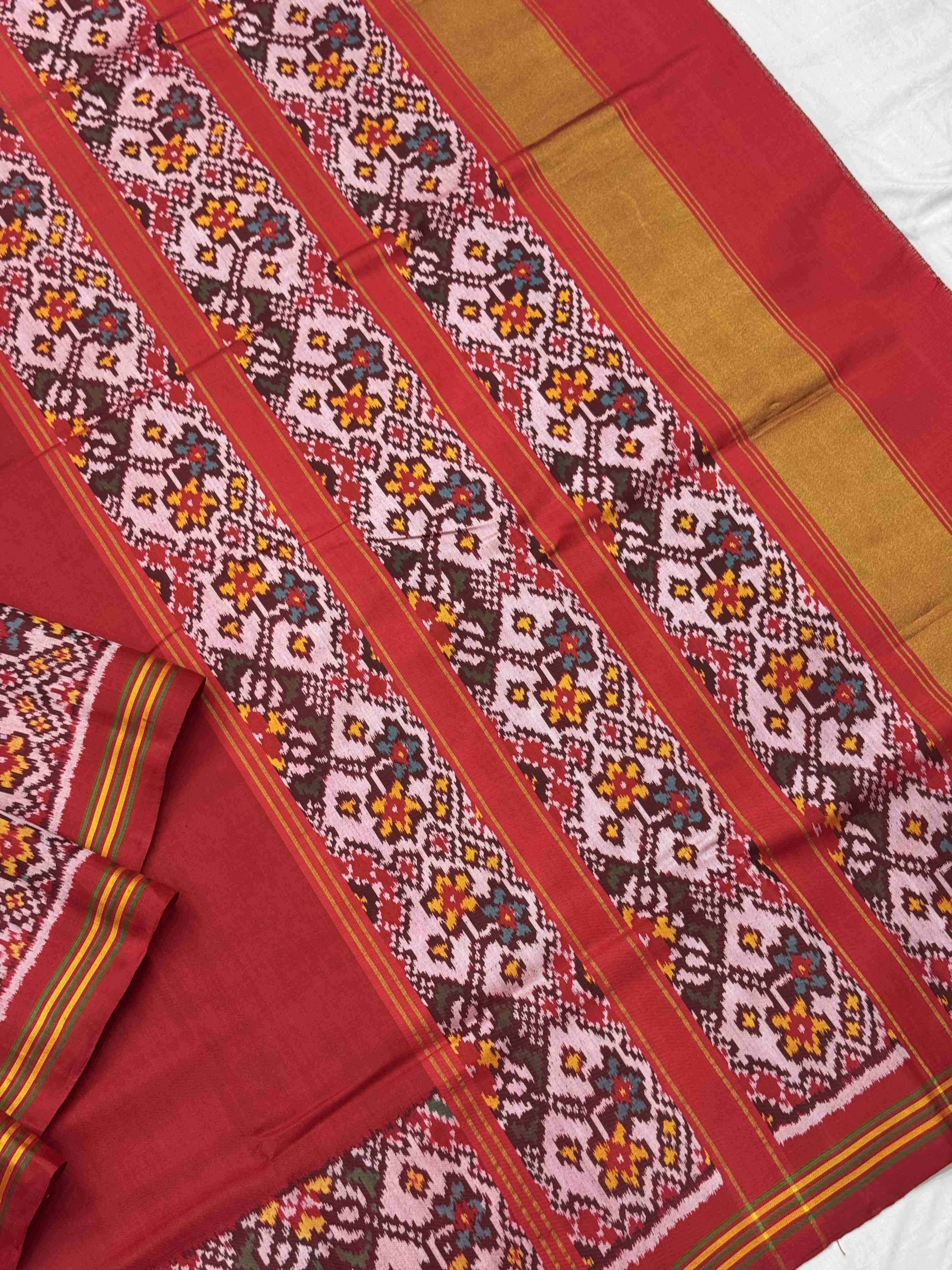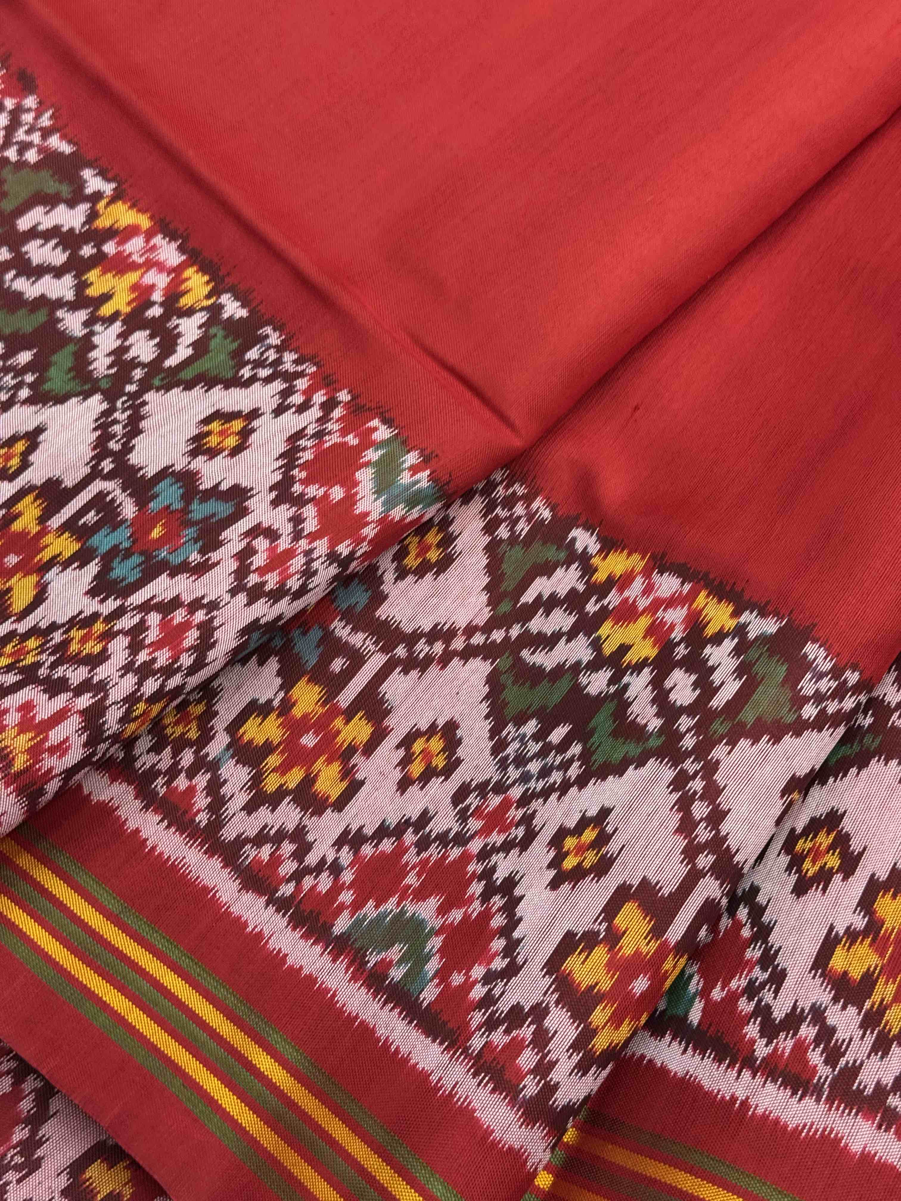 Plain Red Navratan border Patola Saree