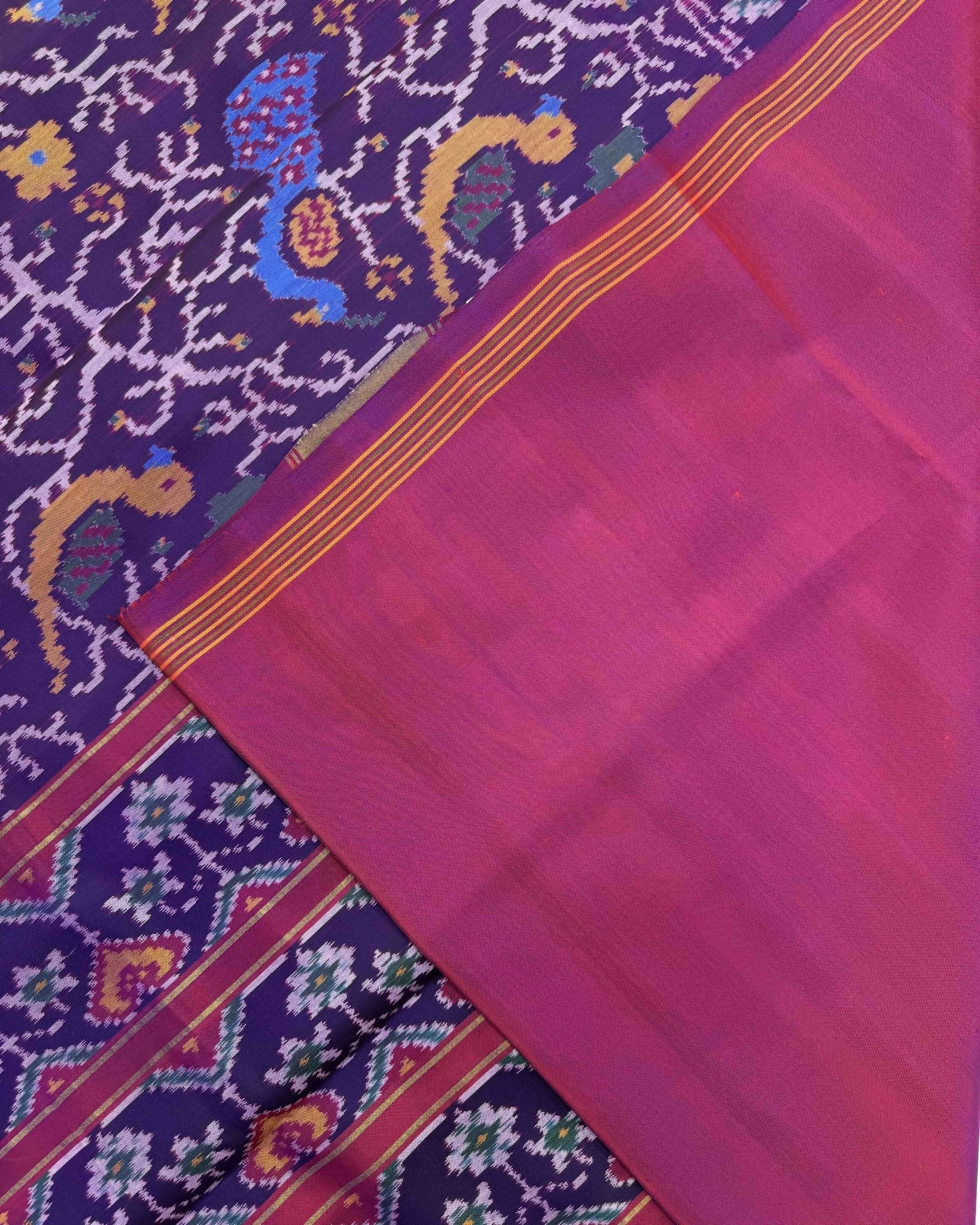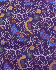 Purple Fancy Peacock Parrot Semi Double Ikat Patola Saree - SindhoiPatolaArt