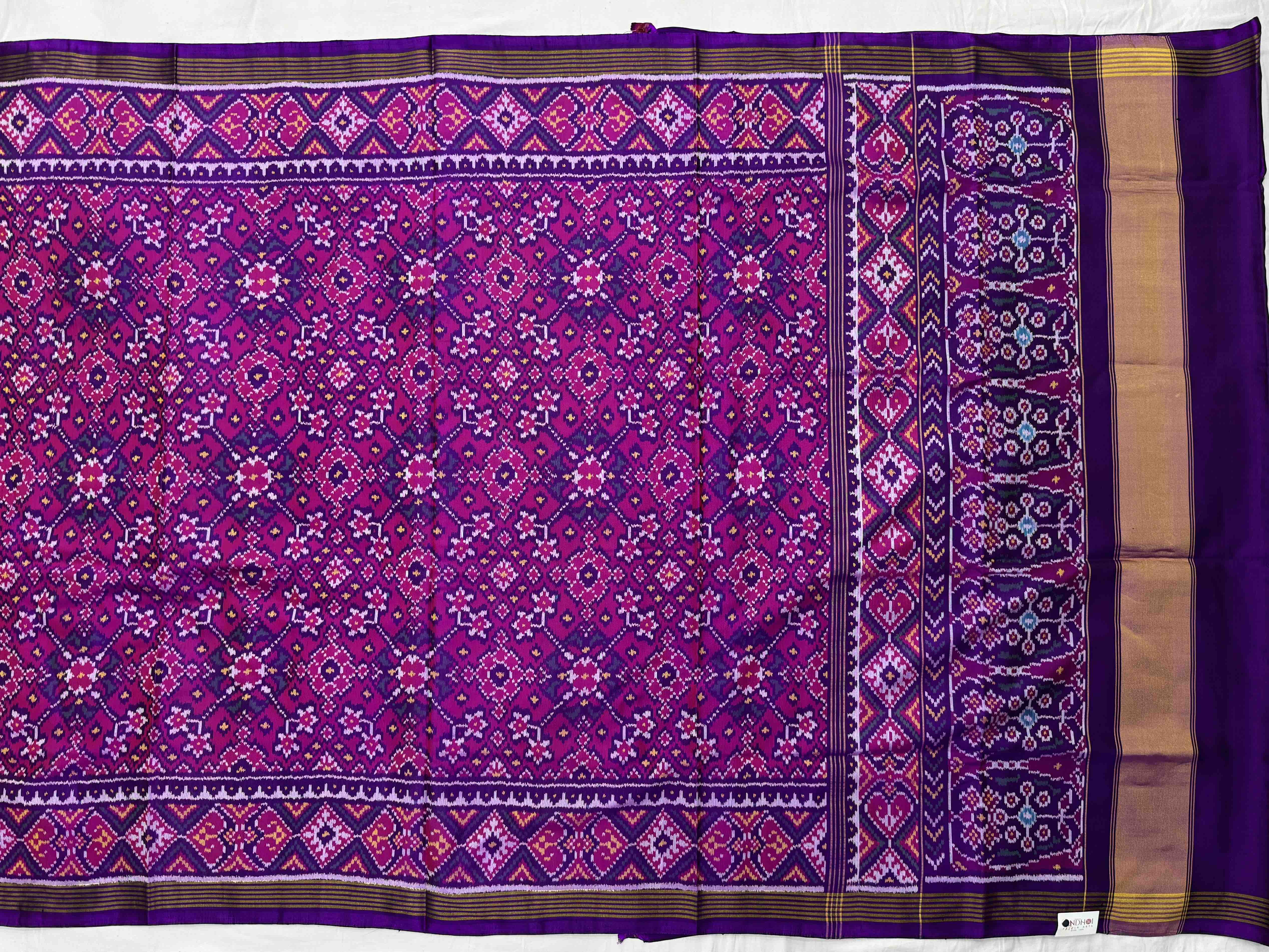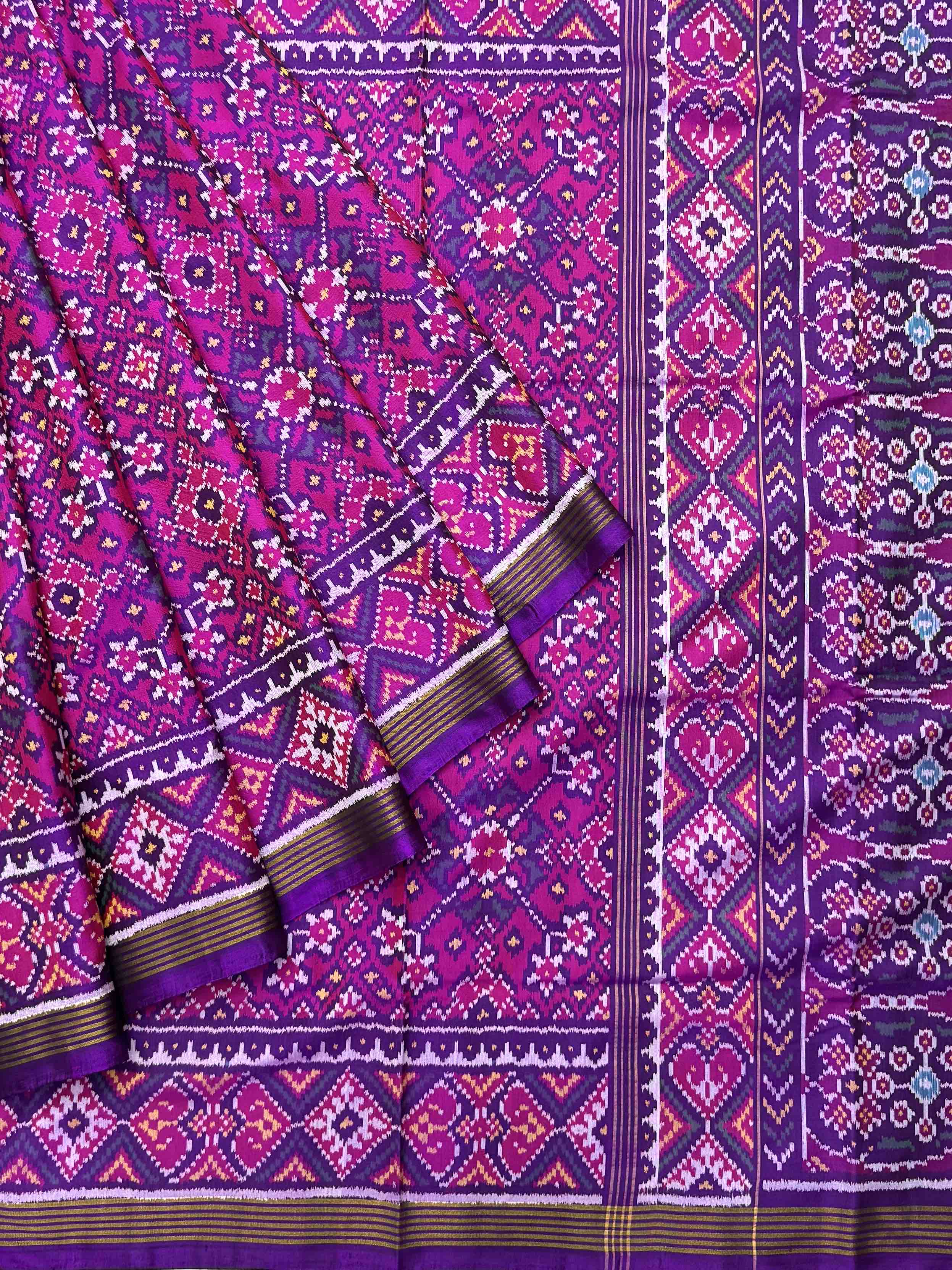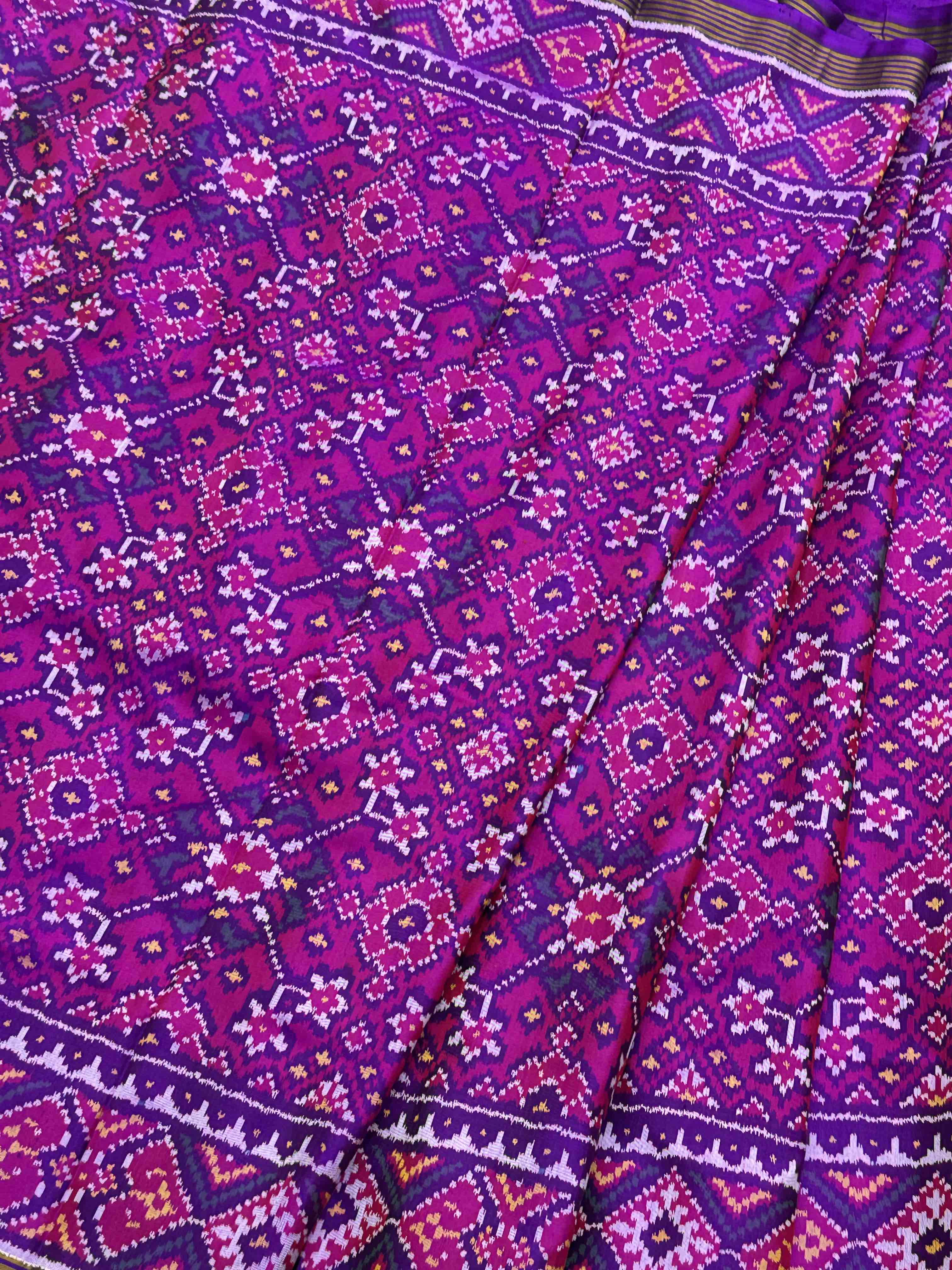 Purple pink navaratan single ikat Patola Saree