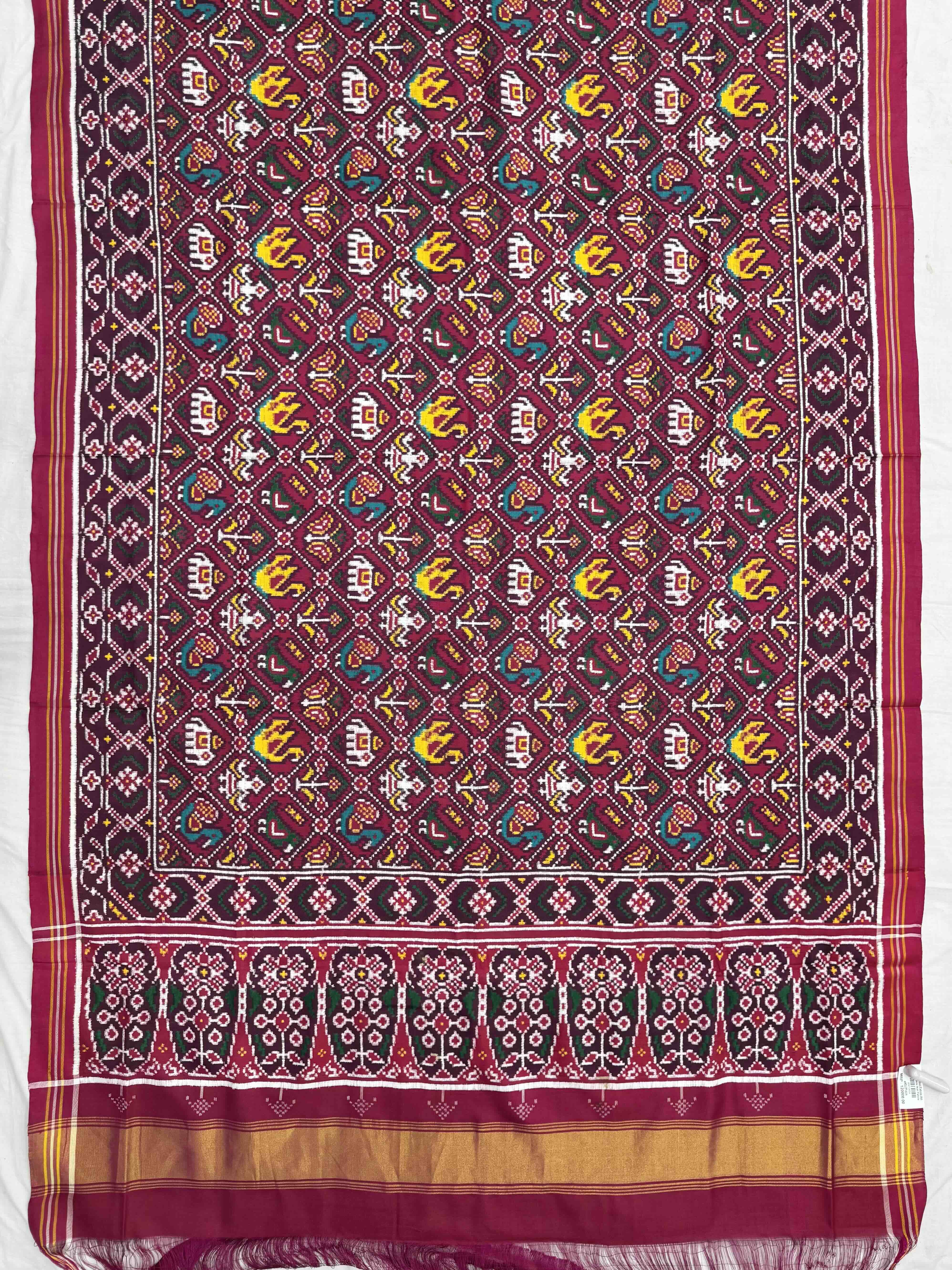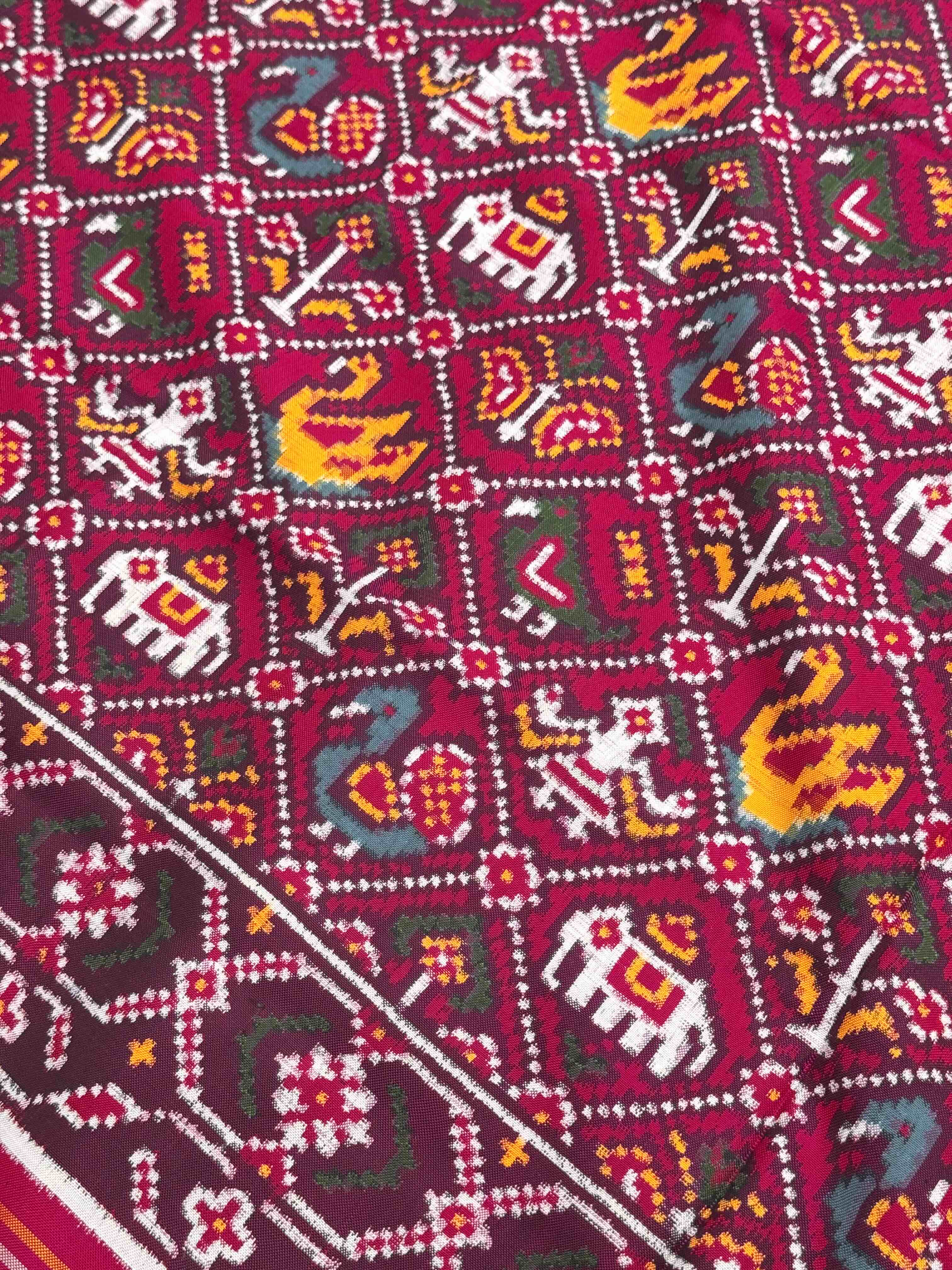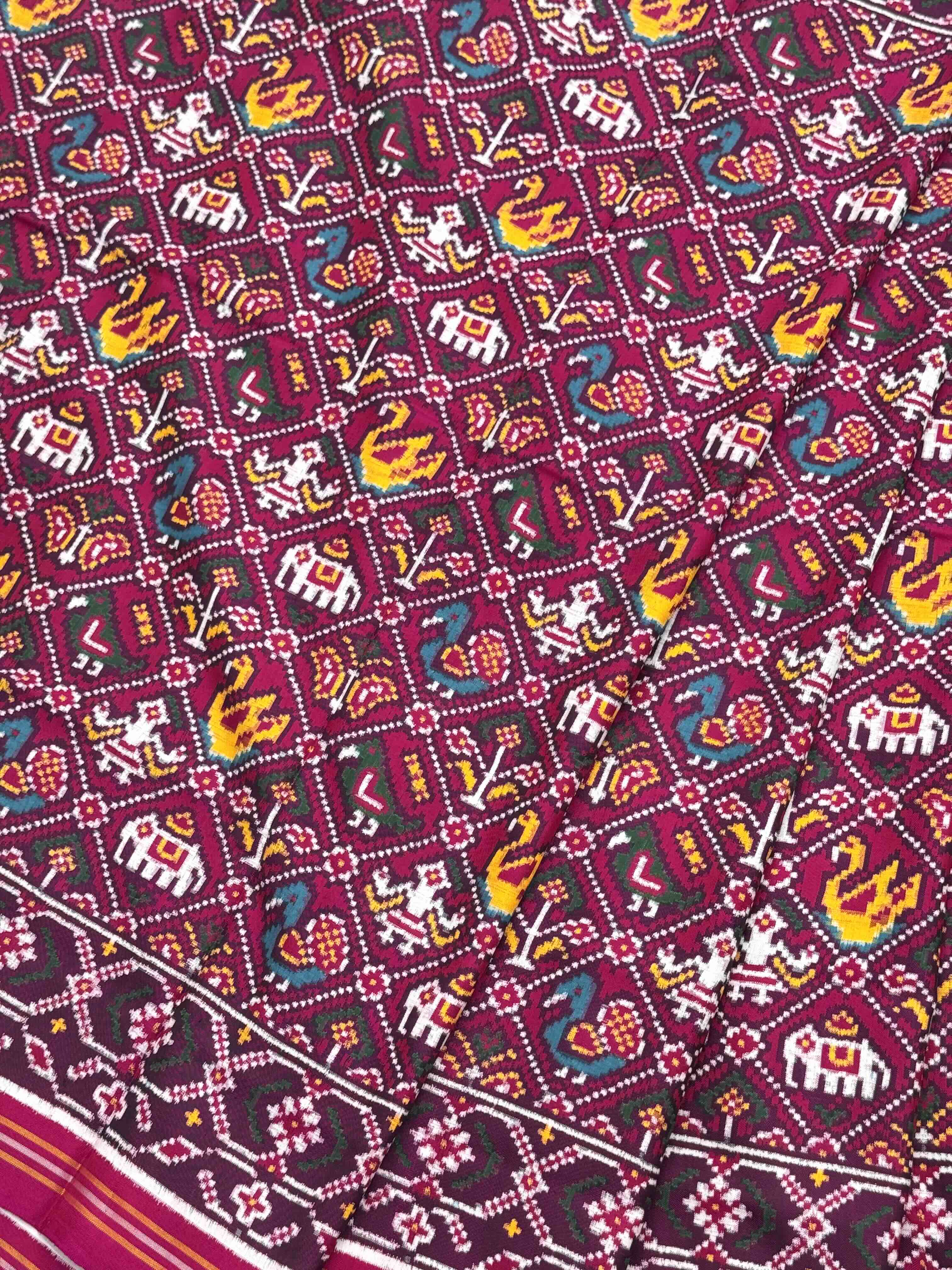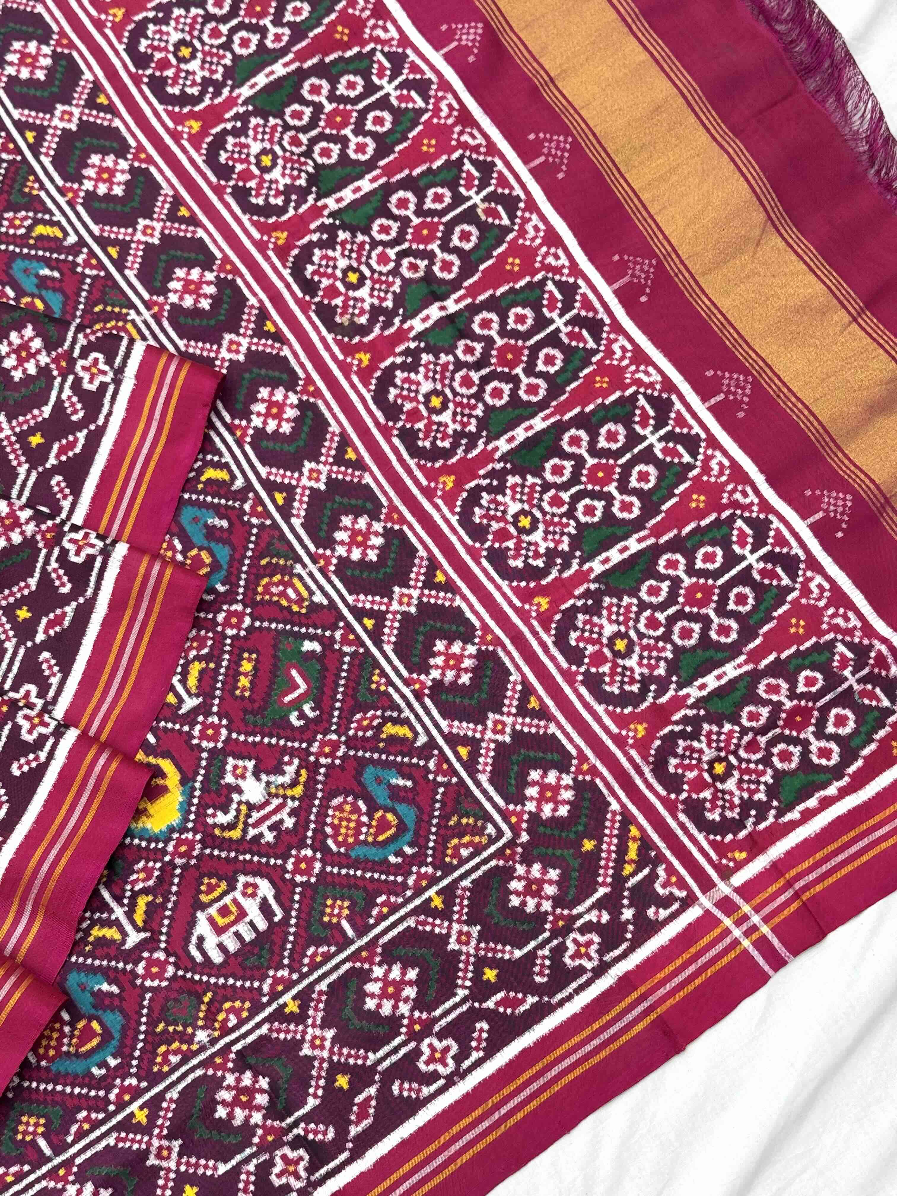 Double Ikat Hand-woven Patan Patola saree Pure Mulberry Silk Length:5.5 meter Width:46 inch Dry Clean Only Authentic...