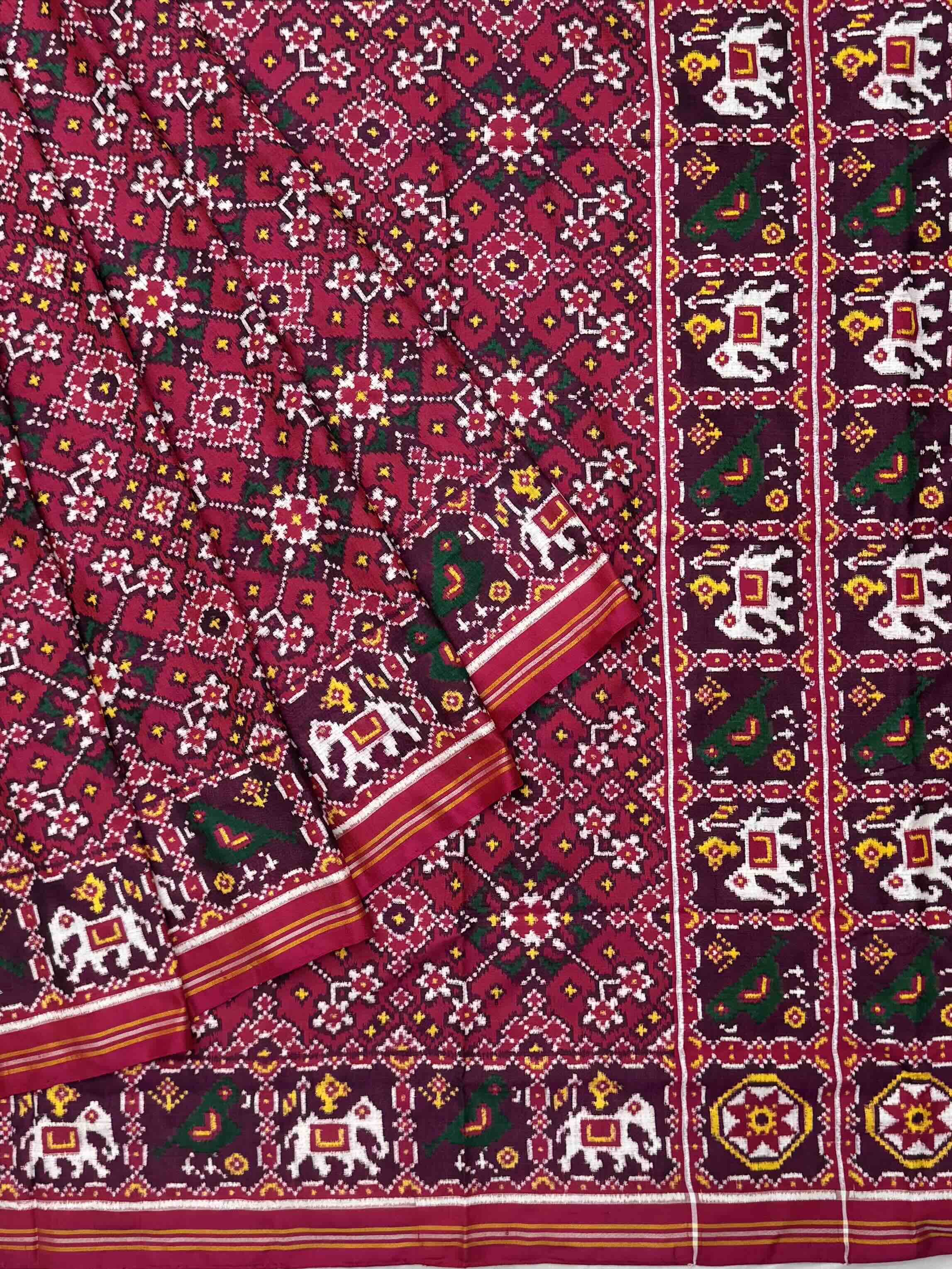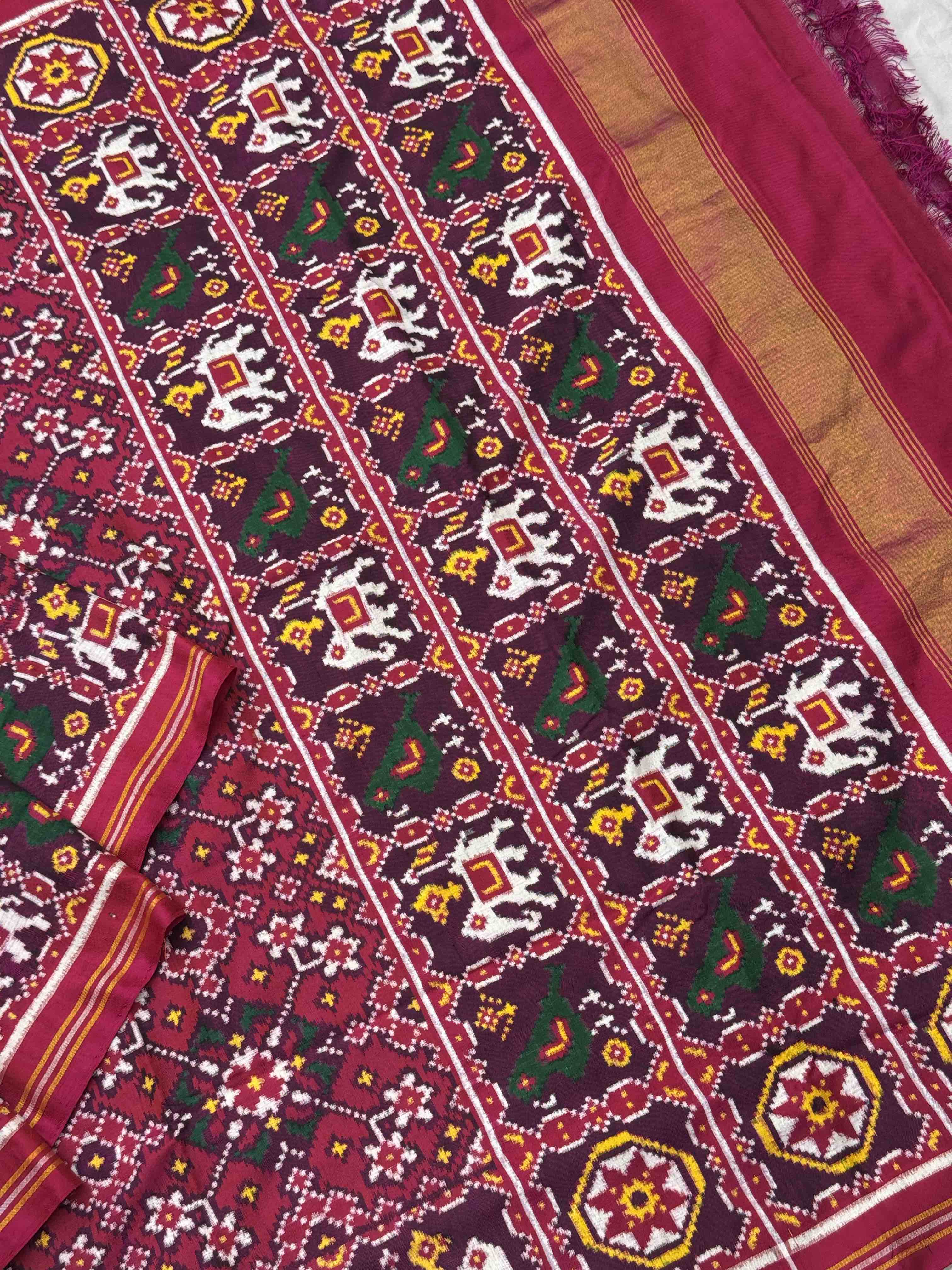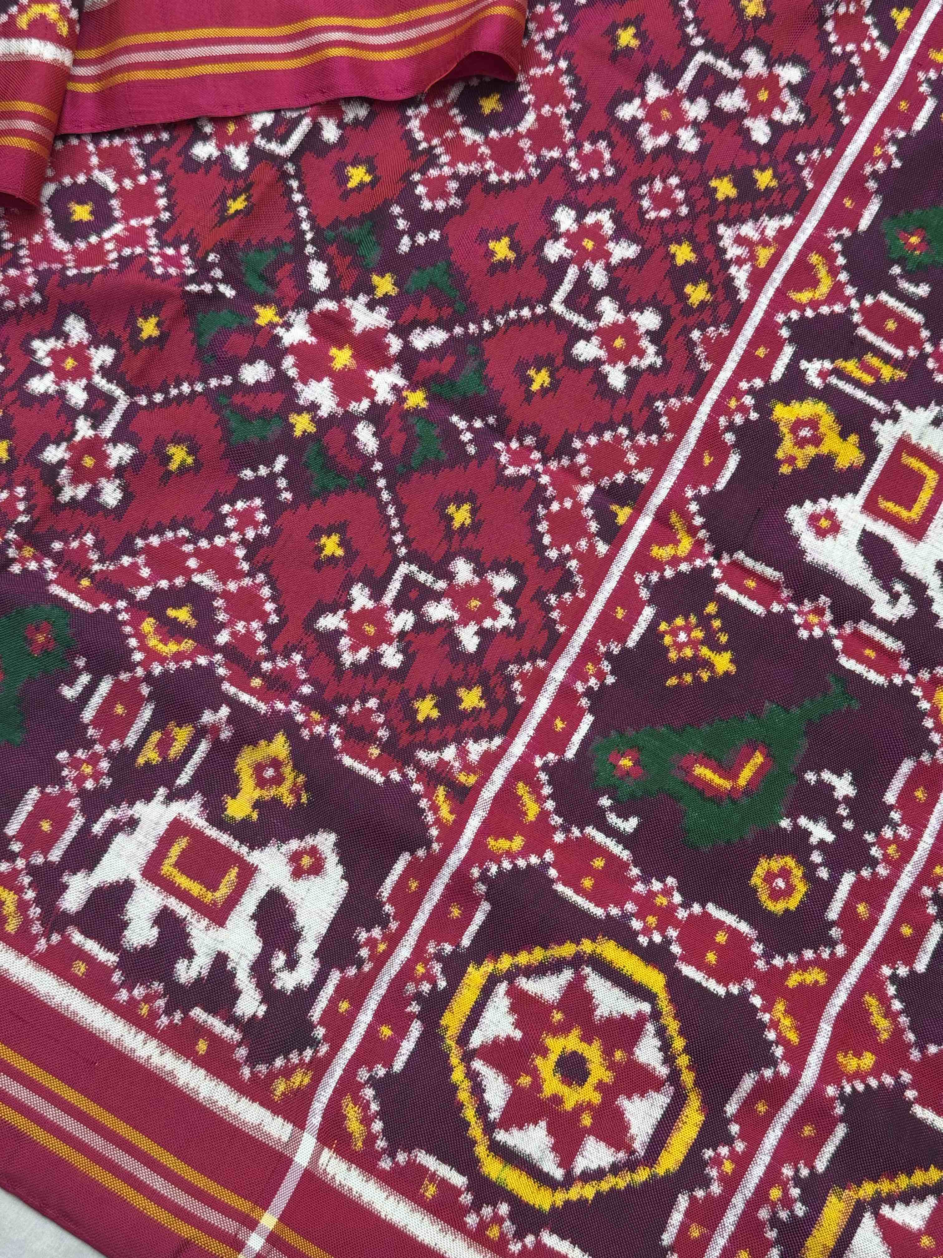 Double Ikat Hand-woven Patan Patola saree Pure Mulberry Silk Length:5.5 meter Width:46 inch Dry Clean Only Authentic...