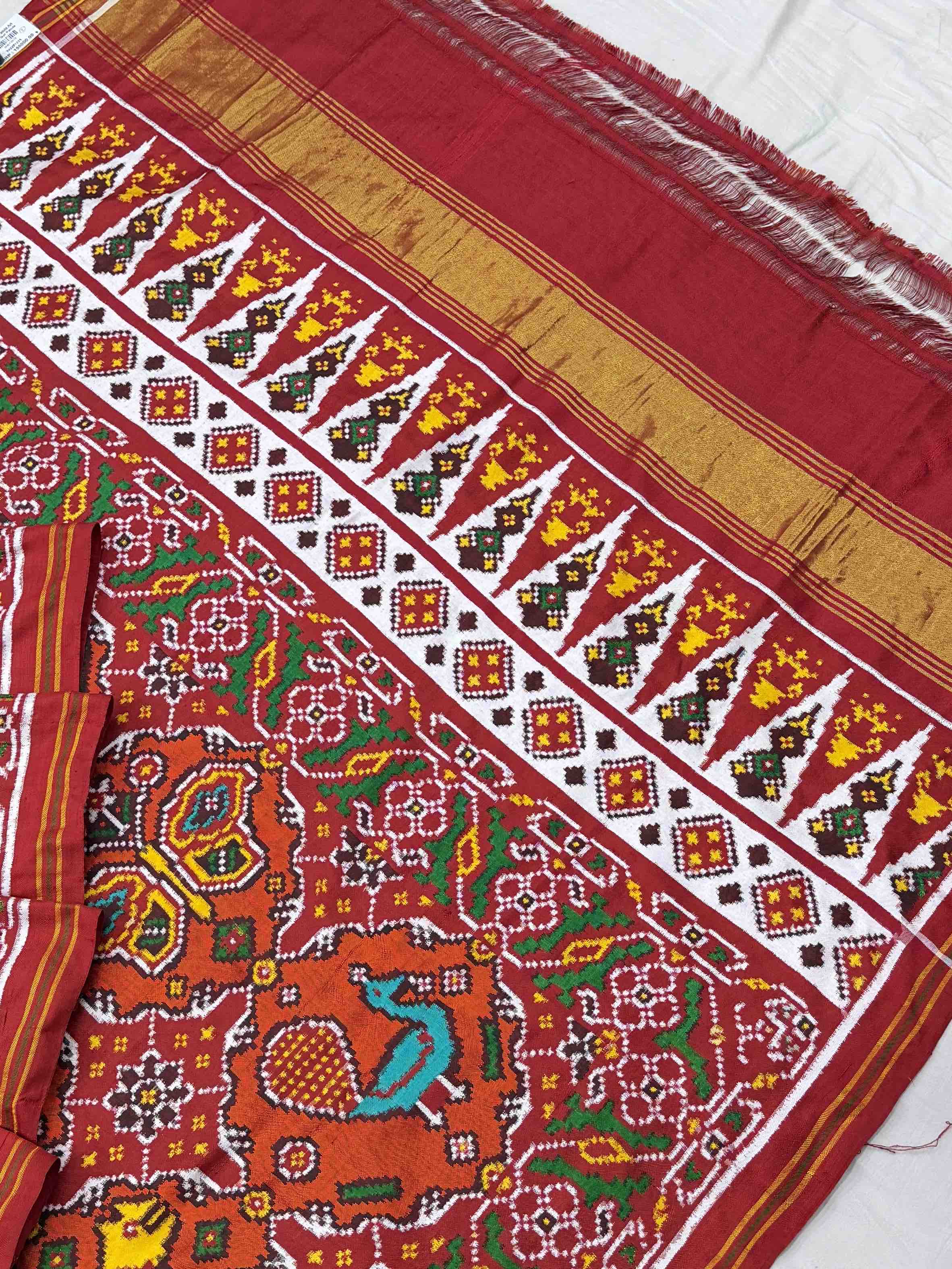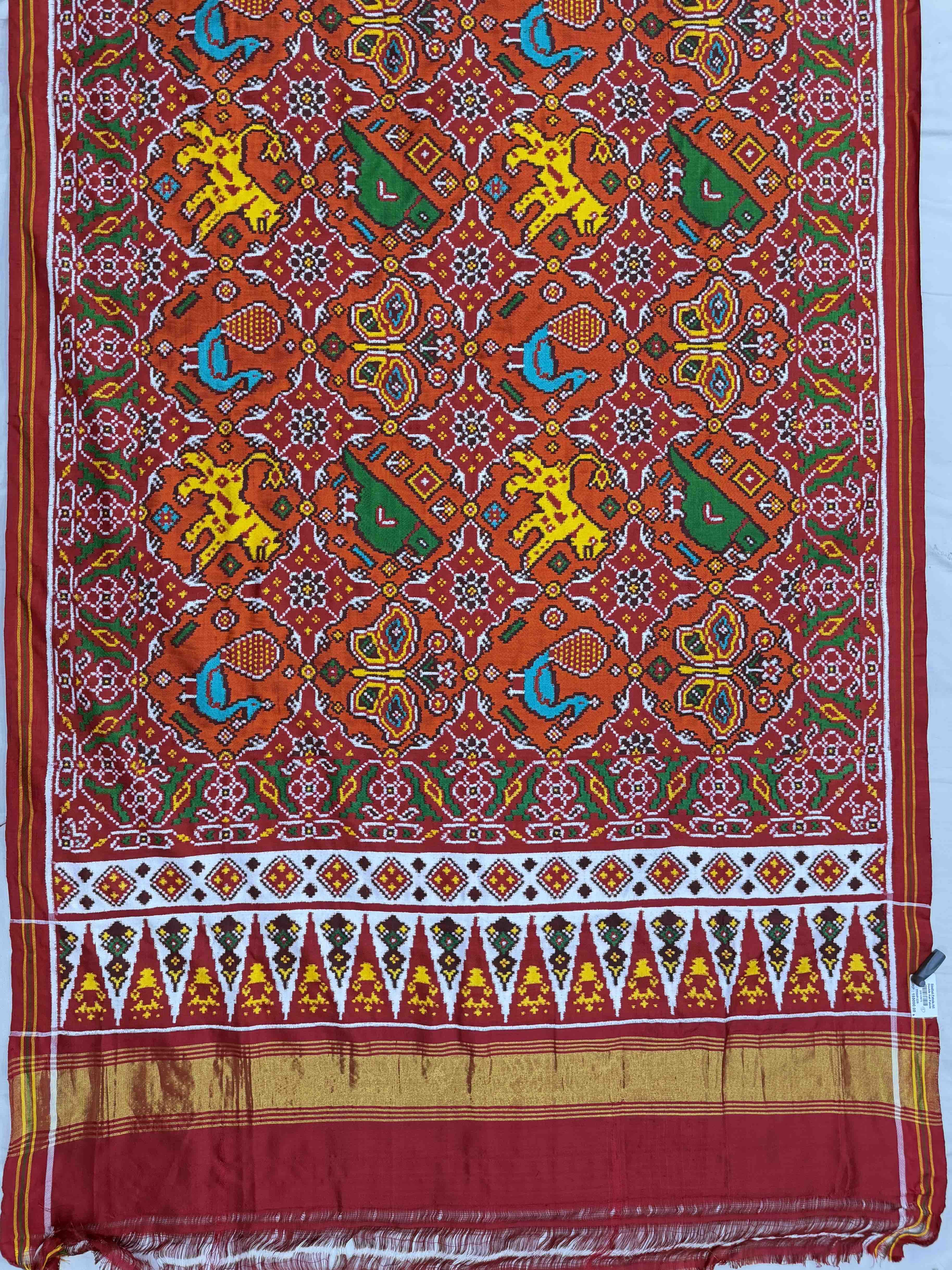 Double Ikat Hand-woven Patola saree Pure Mulberry Silk Length:5.5 meter Width:46 inch Dry Clean Only Authentic Double...