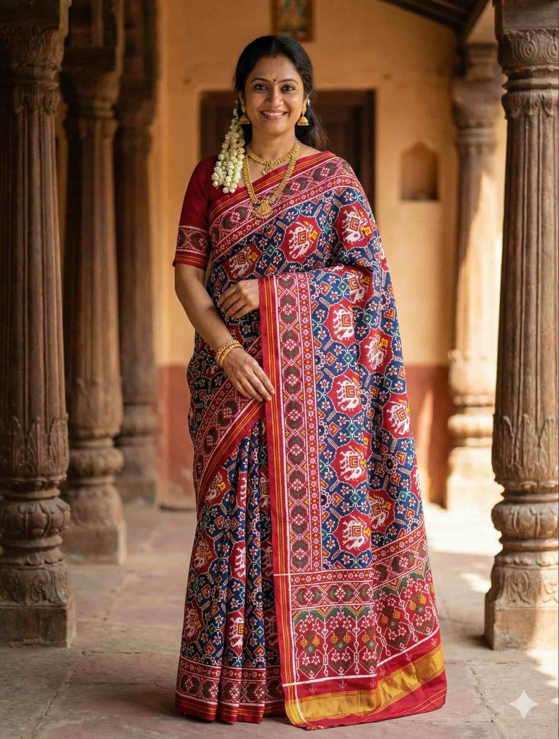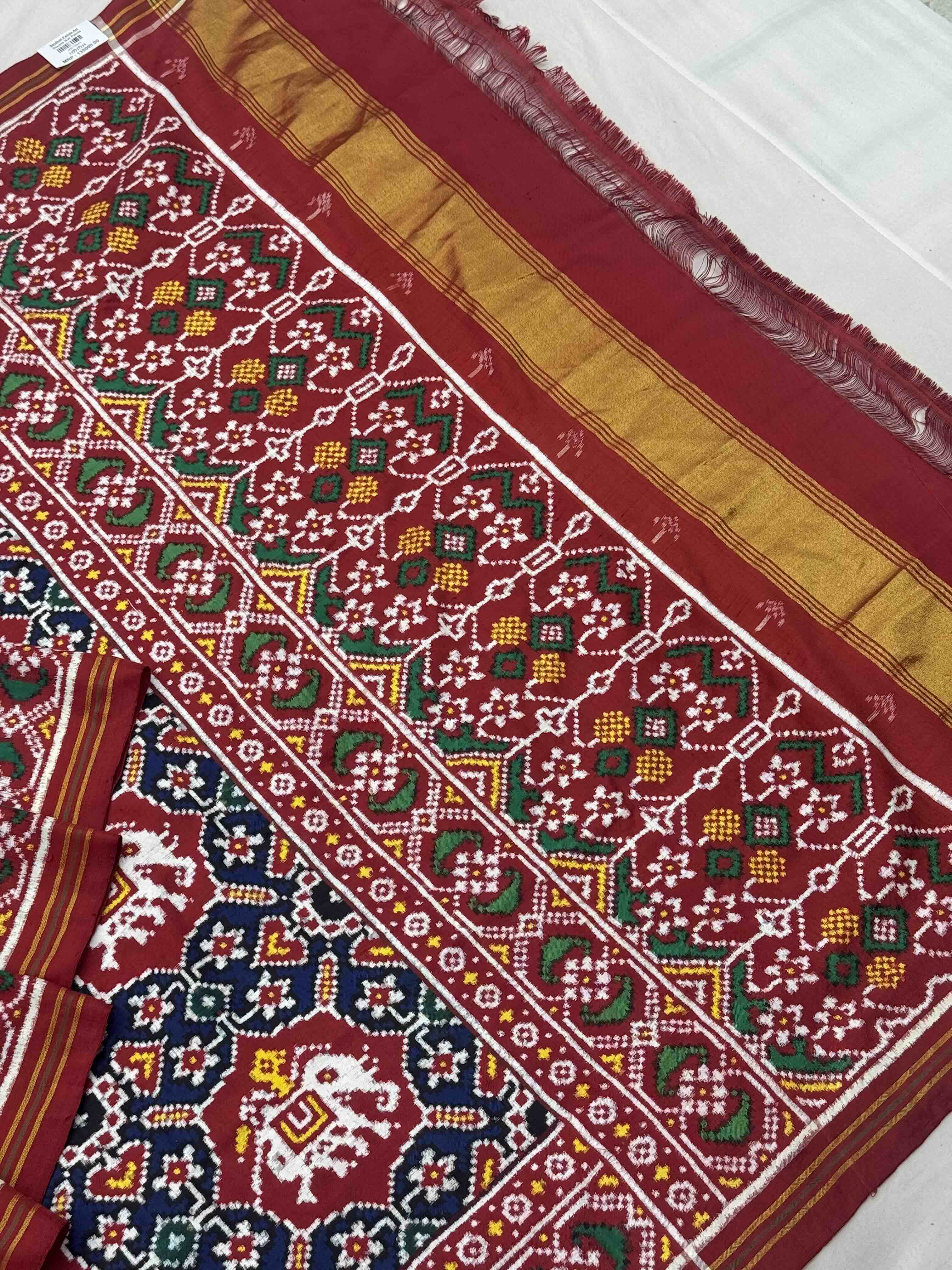 Double Ikat Hand-woven Patola saree Pure Mulberry Silk Length:5.5 meter Width:46 inch Dry Clean Only Authentic Double...