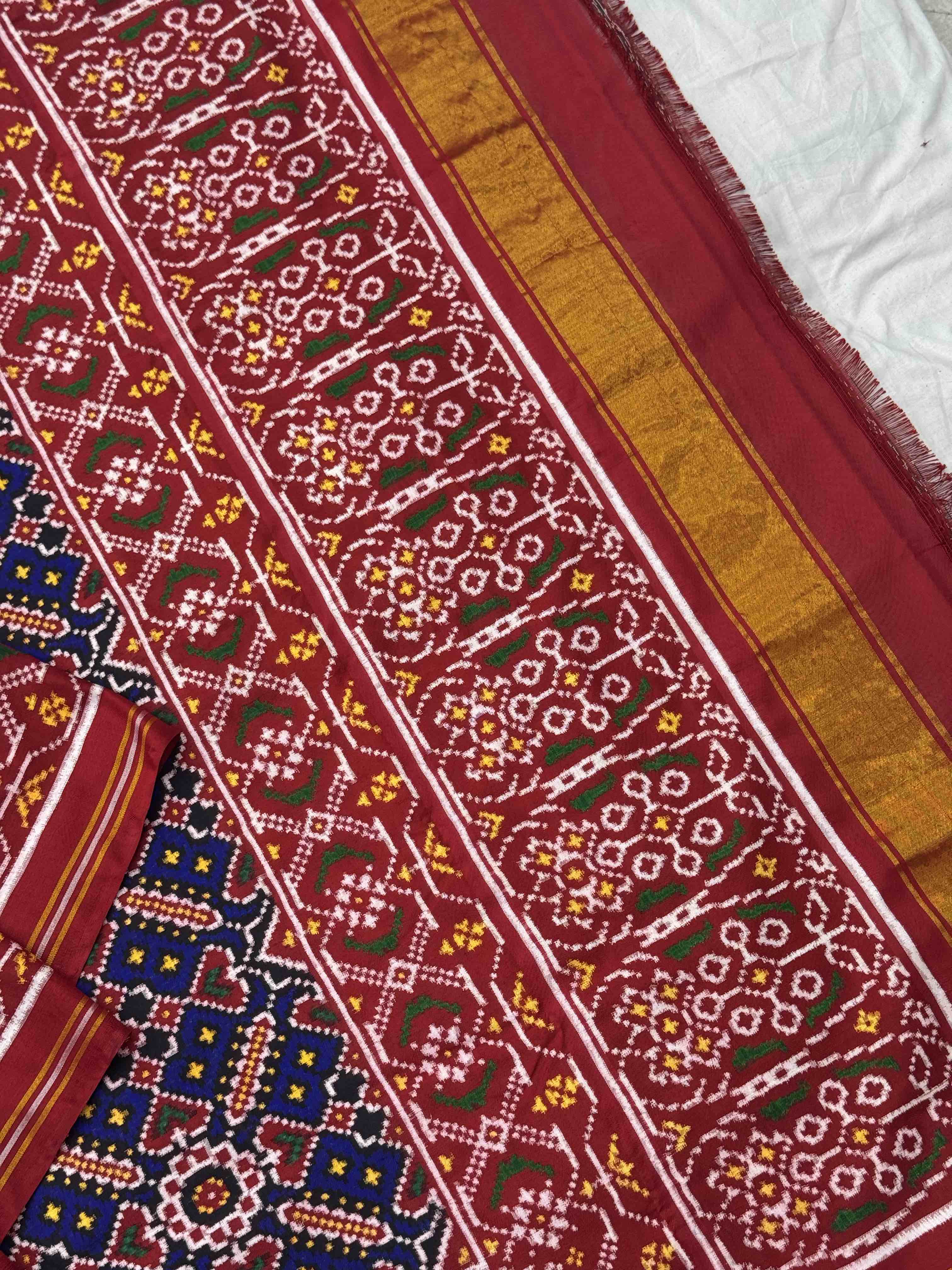 Double Ikat Hand-woven Patan Patola saree Pure Mulberry Silk Length:5.5 meter Width:46 inch Dry Clean Only Authentic...