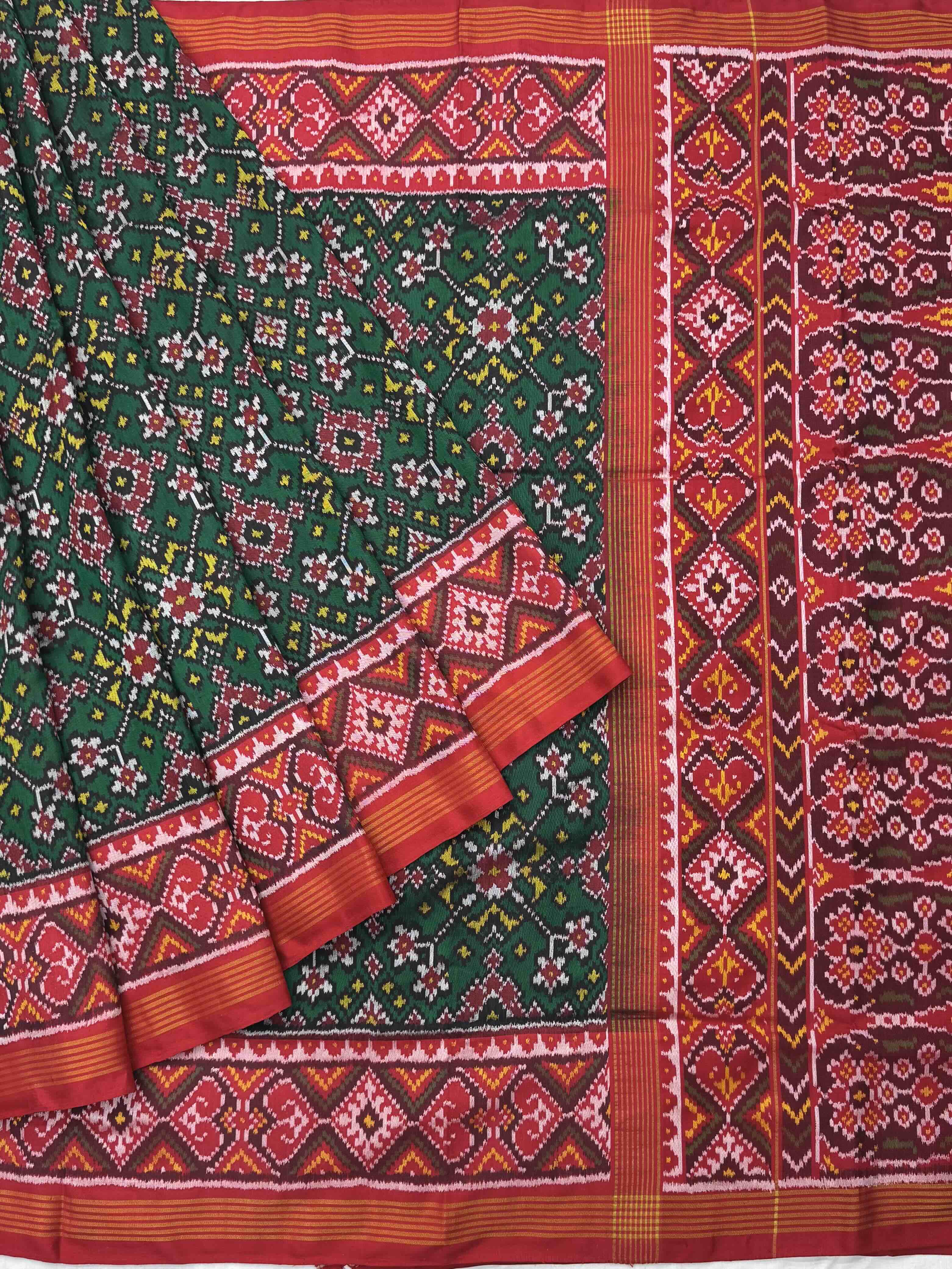 Red & Green Navaratan Patola saree