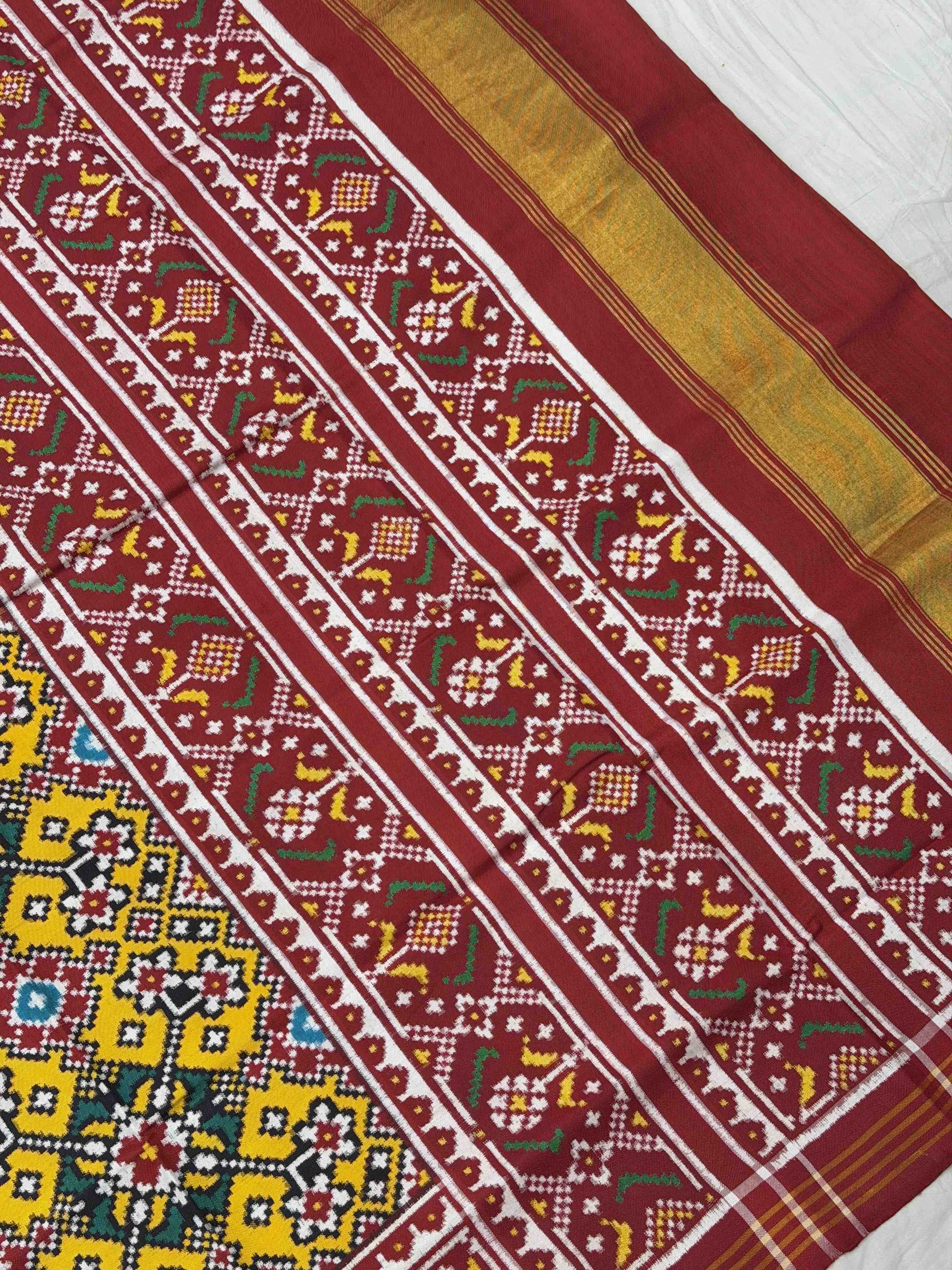 red & lemon navratan Patan Patola Saree