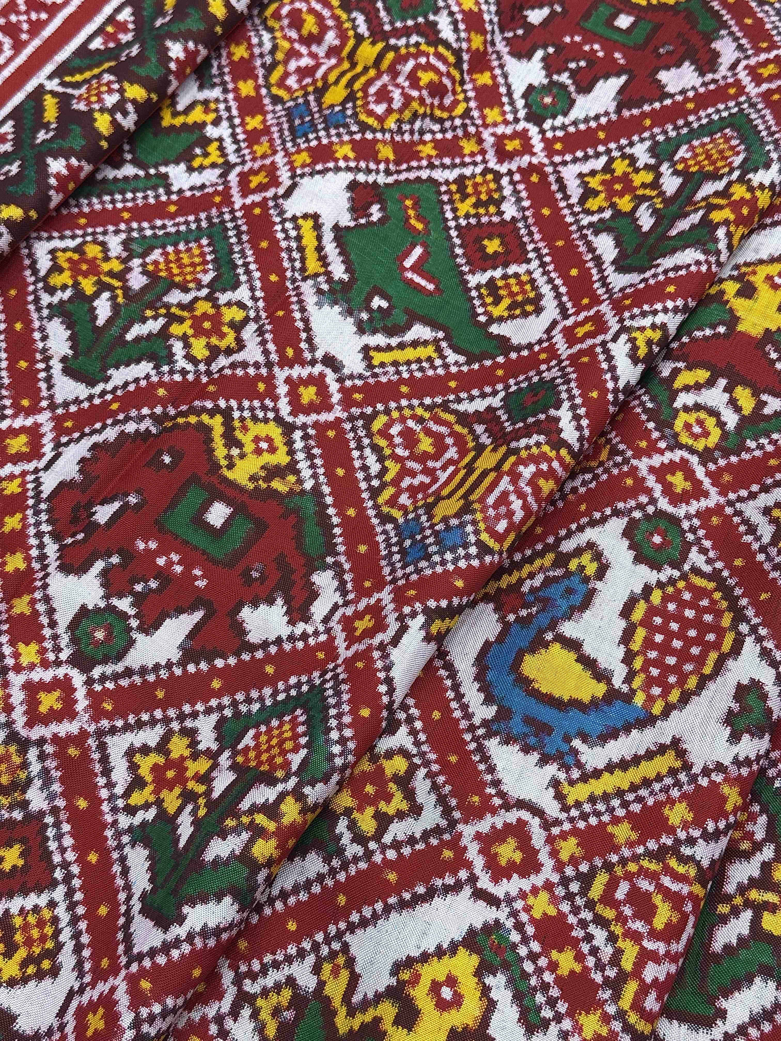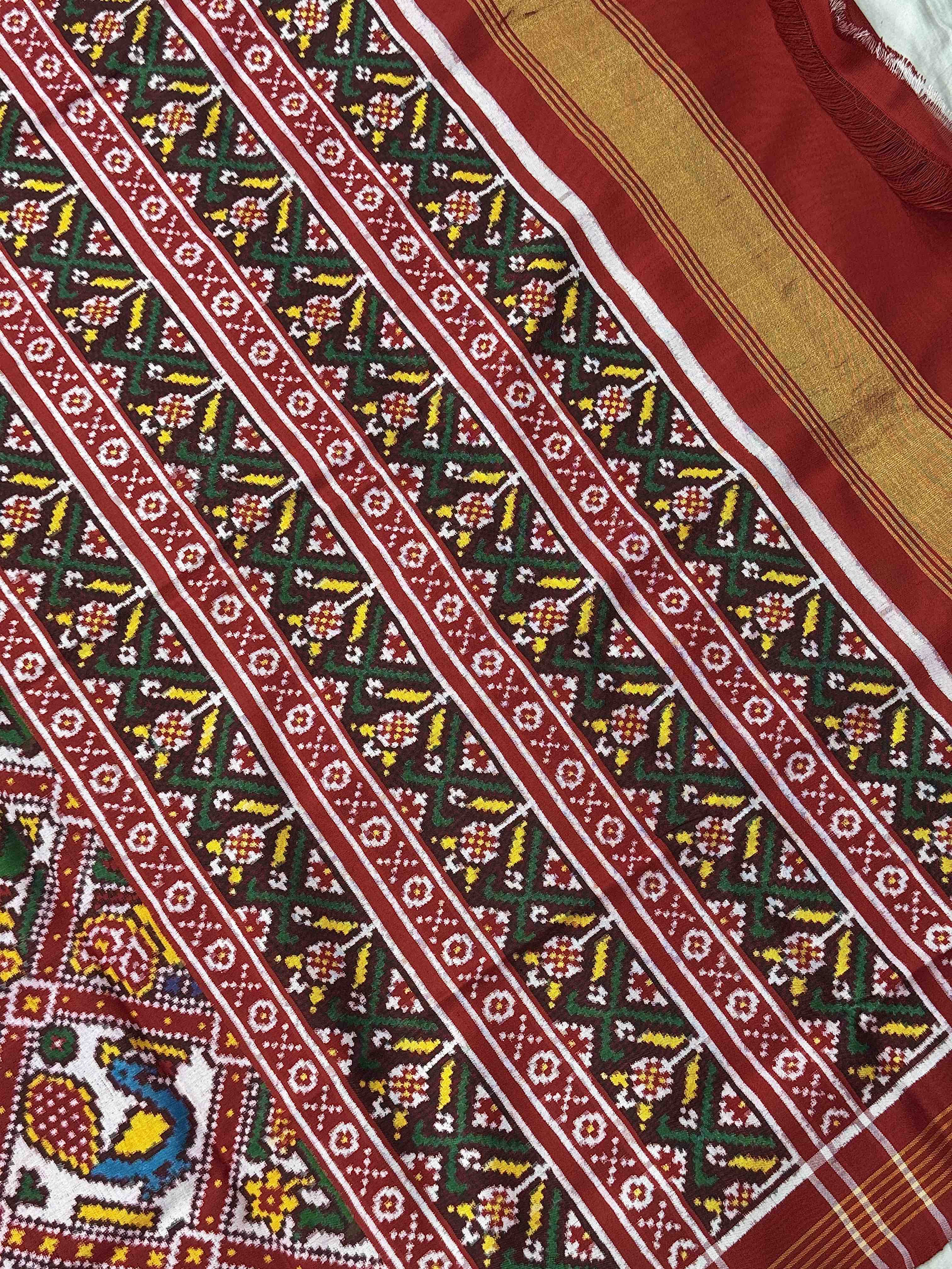 Double Ikat Hand-woven Patola saree Pure Mulberry Silk Length:5.5 meter Width:46 inch Dry Clean Only Authentic Double...