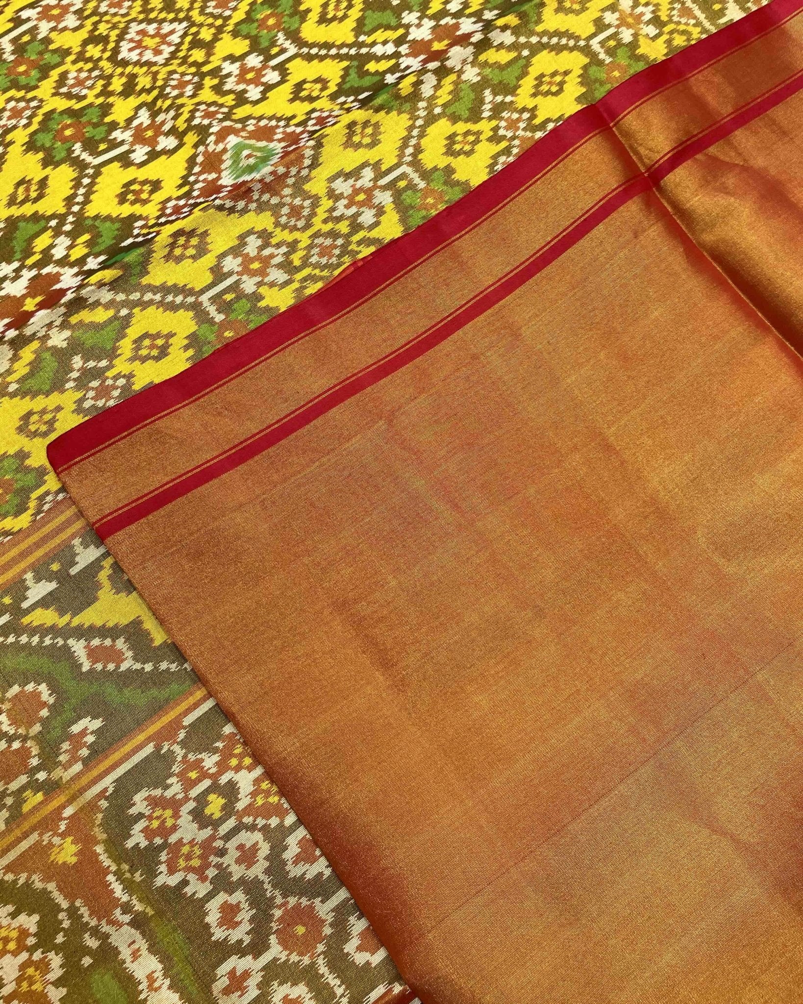 Red & Yellow Navratan Tissue Patola Saree - SindhoiPatolaArt