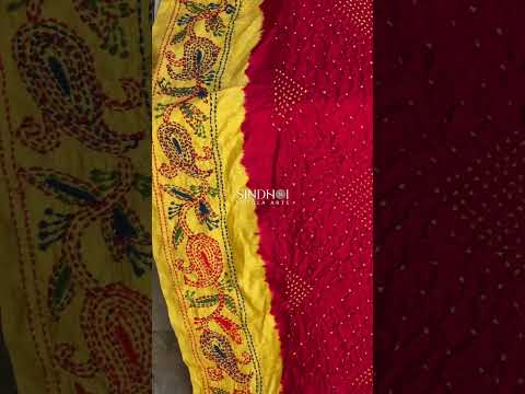Chiniya Silk Bandhani saree with fusion of kantha work of west bengal